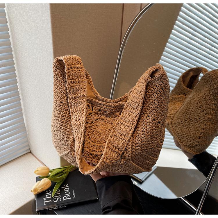 Вязаная соломенная сумка большой вместимости женская летняя 2025 новая модная на плечо для морского отдыха пляжная сумка — купить товар онлайн с бесплатной доставкой по всему миру!