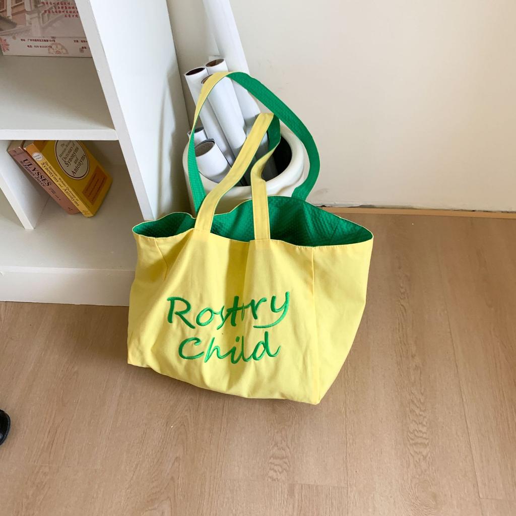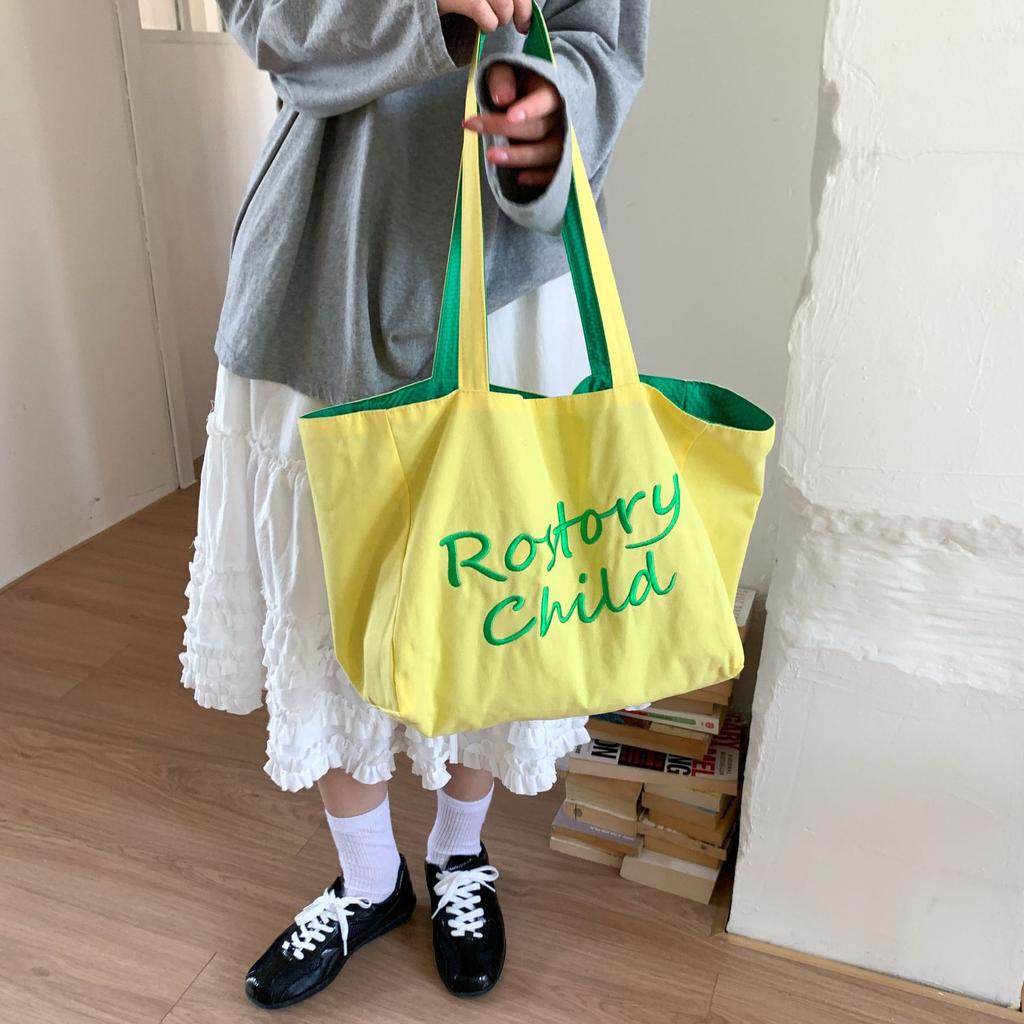Женская сумка-тоут 2025 лето тканевая сумка большой вместимости на плечо вышитые буквы двусторонняя ленивая тканевая сумка