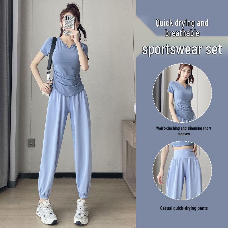 Женский быстросохнущий спортивный комплект для бега и фитнеса 2025 - Брюки для йоги и одежда для хайкинга