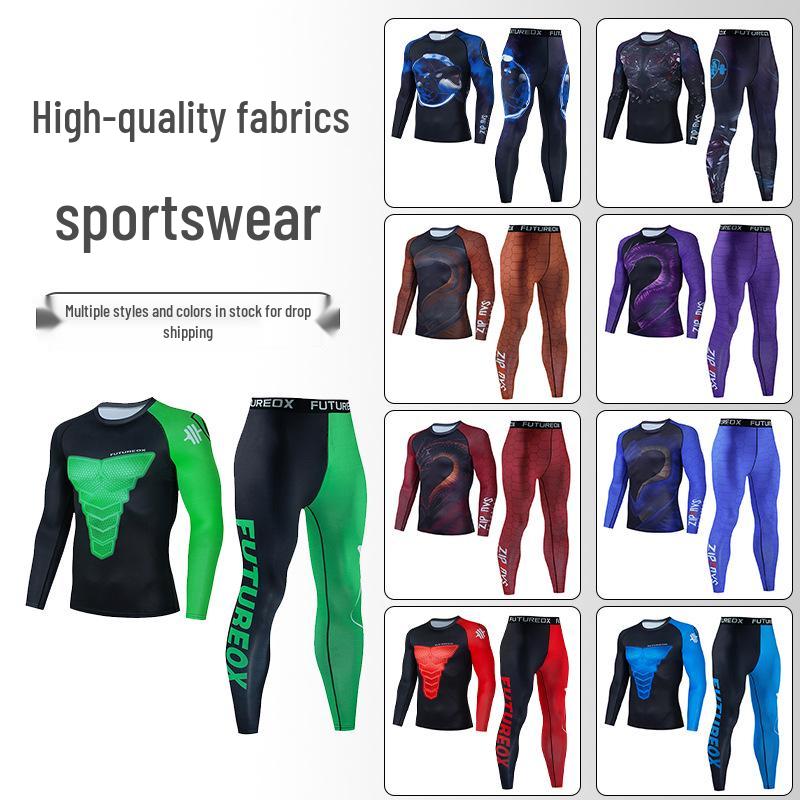 Мужской быстросохнущий спортивный комплект из двух предметов: Рубашка с длинным рукавом и брюки для баскетбола и велоспорта