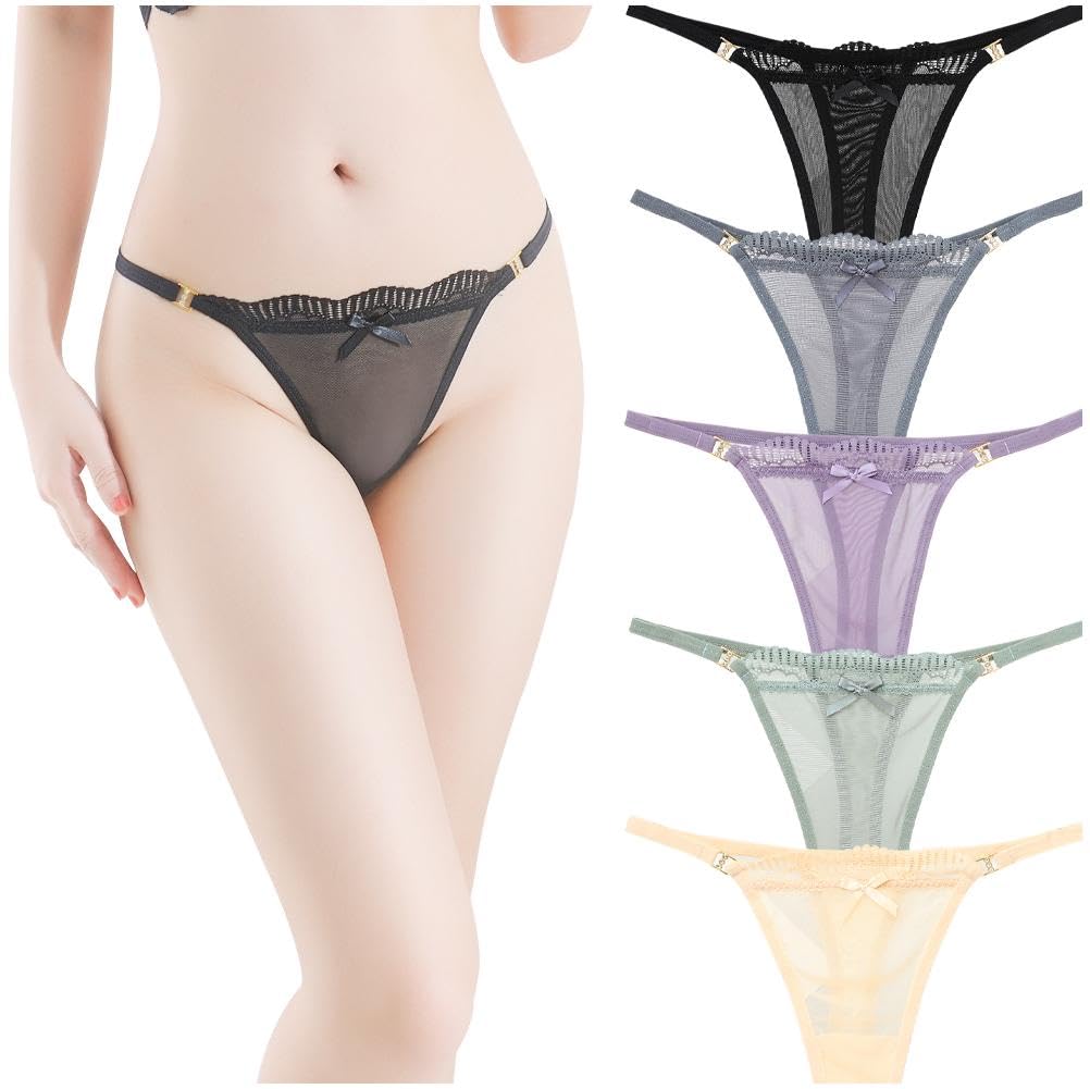 VATEIS Трусики с боковыми завязками Сексуальное нижнее белье Размер Женские Т-образные стринги с лентами, Прозрачные, Полупрозрачные, Завязки, (5 цветов, L)