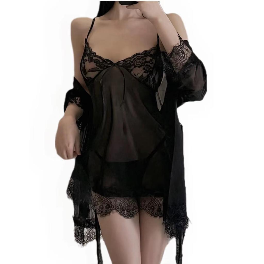 Бэбидолл Сексуальное нижнее белье Цветочное кружево Милое платье Ночная сорочка Комбинация Сексуальный комплект нижнего белья [PHCOMRICH] Прозрачный (Черный, С)