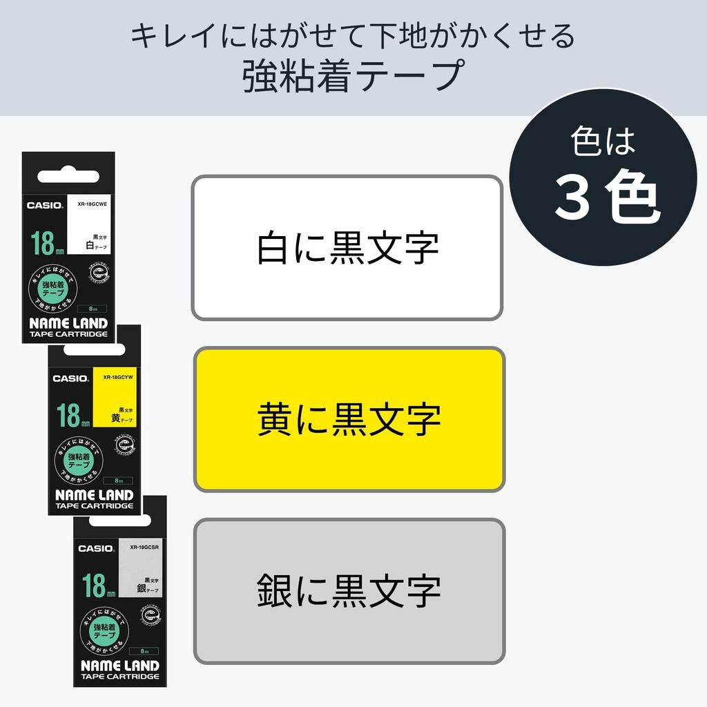 Casio Этикеточная машина Nameland Прочная клейкая лента, которая чисто отклеивается и скрывает то, что под ней 46 мм Белая XR-46GCWE