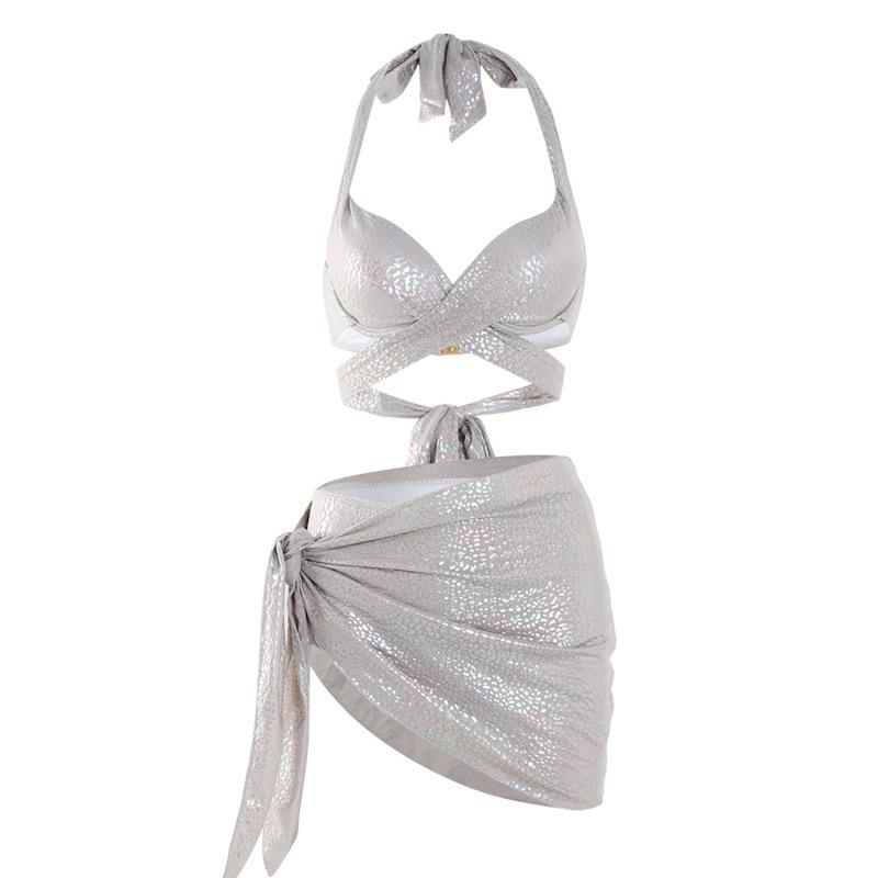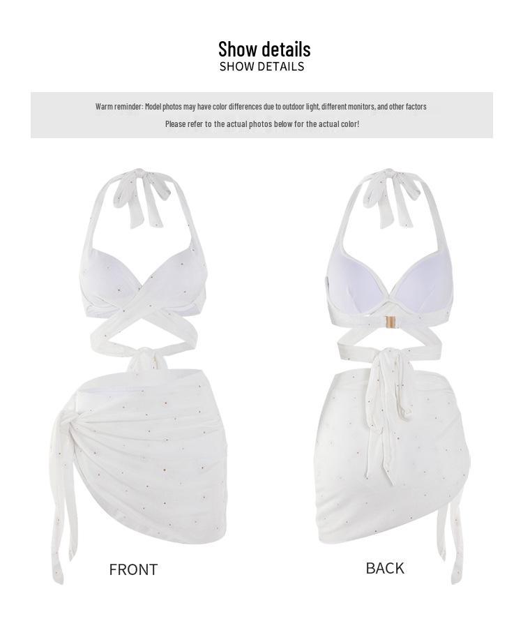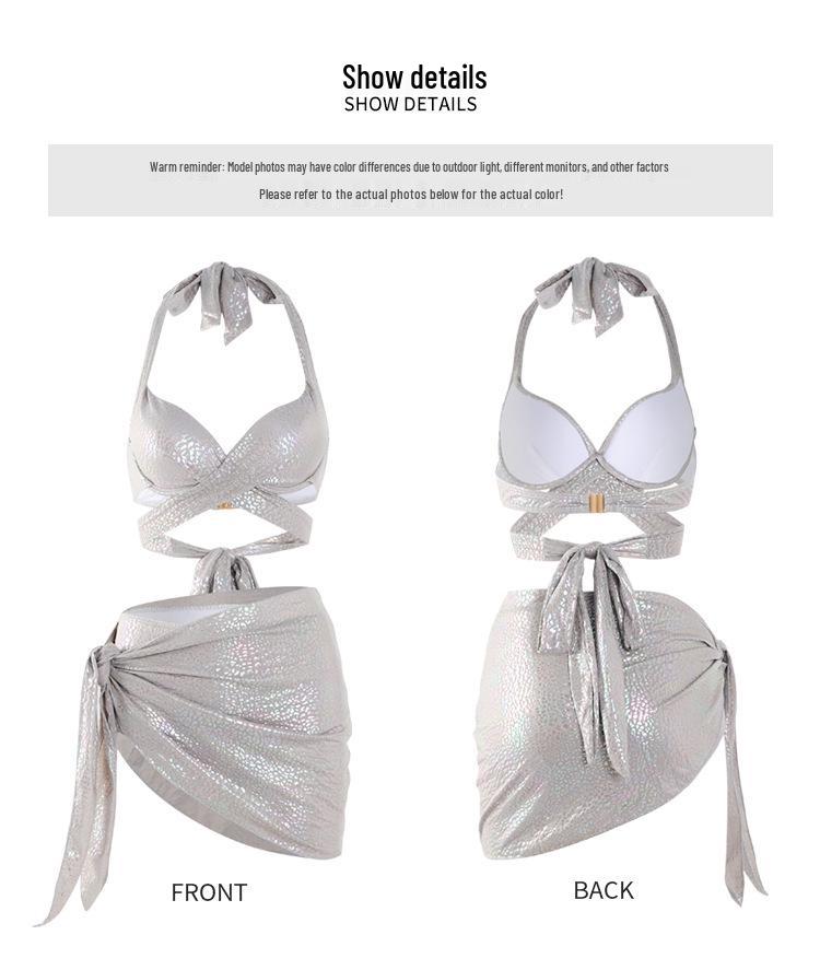 Женский купальник-бикини из трех частей в японском и корейском стиле на 2024 год: Сексуальный купальник на бретелях, стройнящий, с разрезом для отпуска или горячего источника