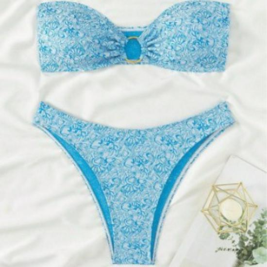2024 Европейский и Американский Горячий Стиль Однотонный Купальник Бикини Бандо