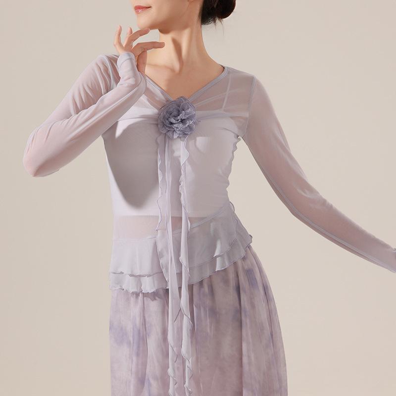 Женский эластичный танцевальный костюм с длинным рукавом и цветочным принтом - Облегающий современный топ для выступлений