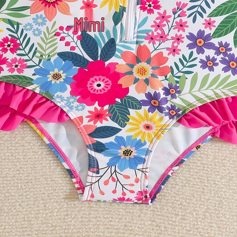 2025 New Long Sleeve Printed Bikini for Girls - European & American Style Swimwear, Ideal for Seaside Vacations