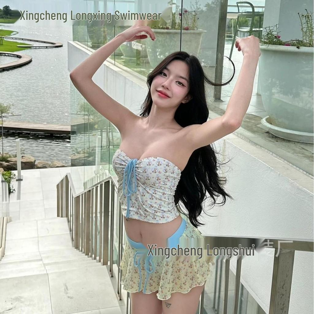 Цветочный корейский купальник бандо - Сексуальный и милый купальник для отпуска для женщин