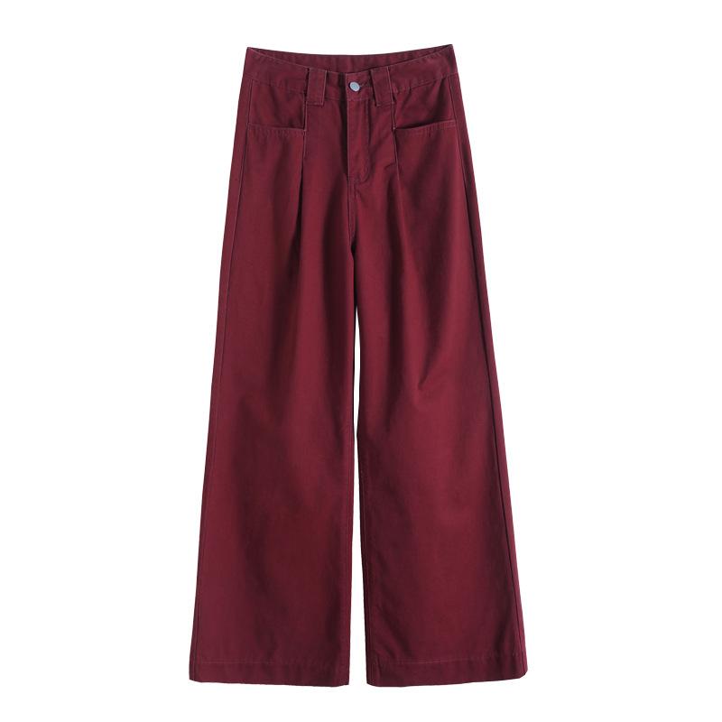 Прямые джинсы Encore красного цвета с широкими штанинами для женщин, новые осенние, с высокой талией, свободные, тонкие, стройнящие, драпированные брюки в пол