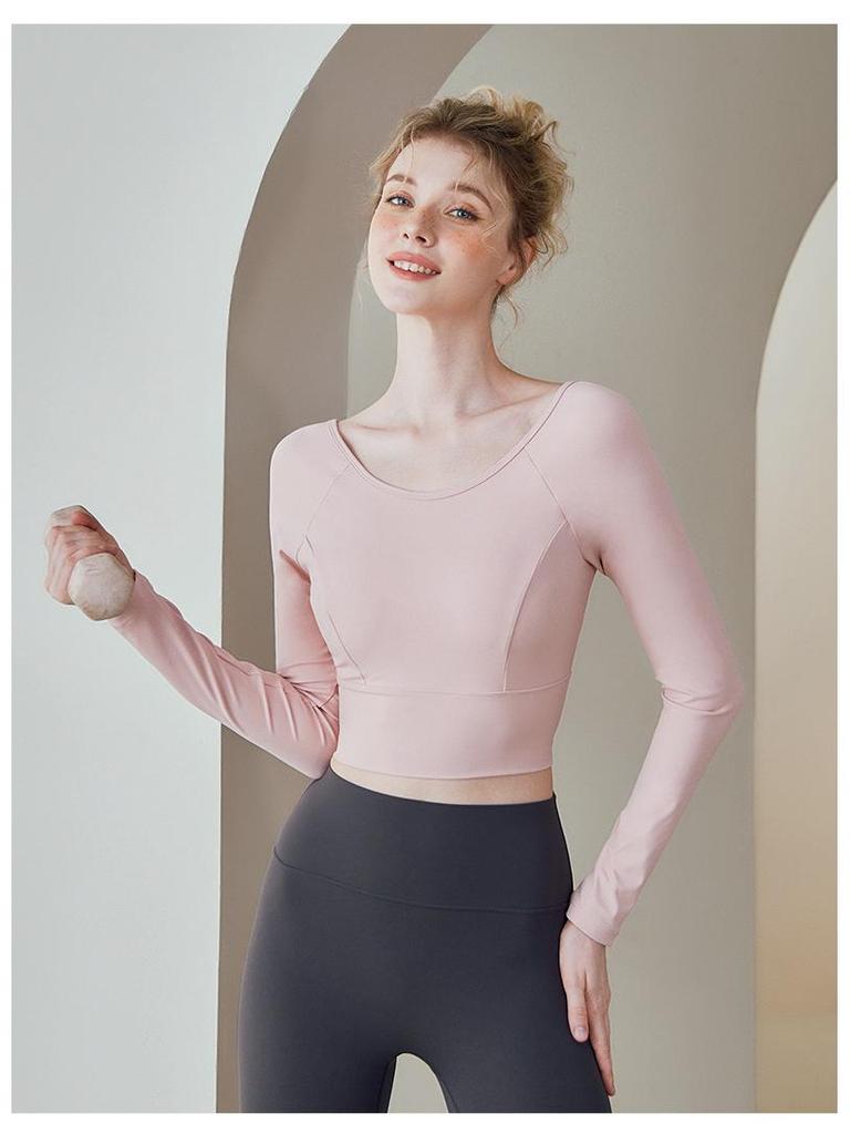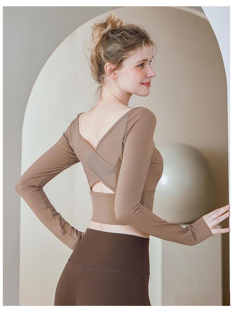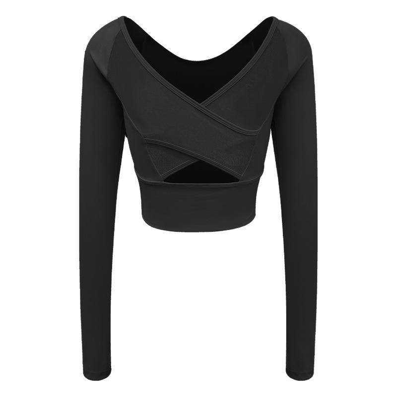 Женский летний топ для йоги: Длинный рукав, сетчатая спинка, стильная спортивная одежда.