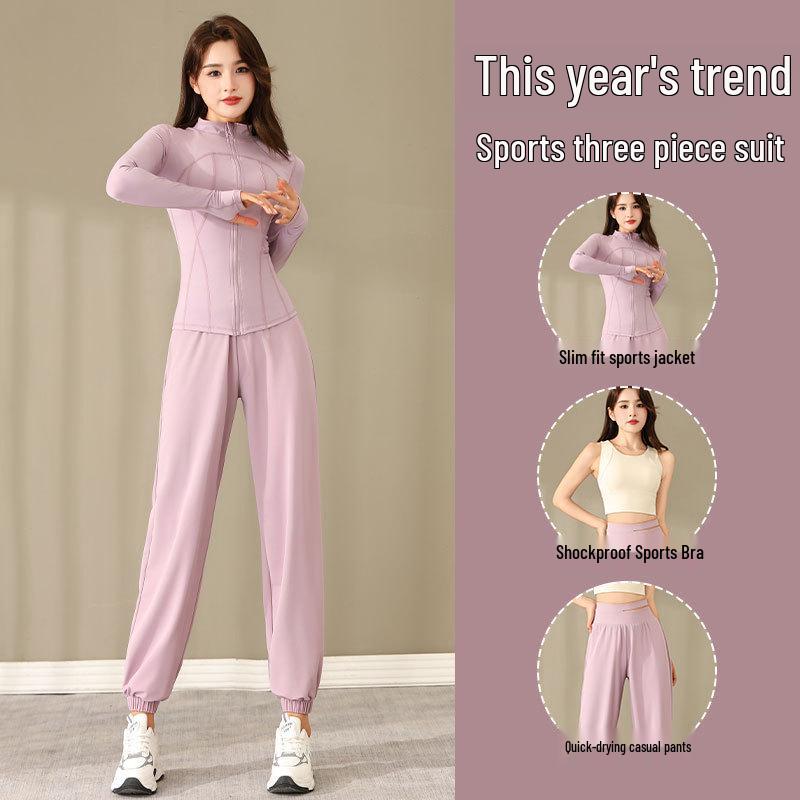 Женский комплект для активного отдыха 2024: Весенне-осенняя куртка для бега и быстросохнущие брюки для пеших прогулок, фитнеса, йоги и повседневных утренних пробежек.