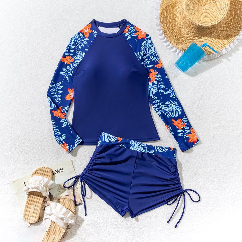 Женский купальник танкини с длинными рукавами и принтом пэчворк, стройнящий фигуру