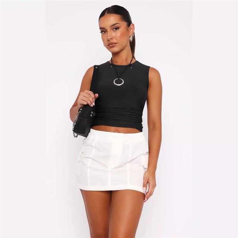 Women's Solid Color Sexy Backless Cropped Short Sleeve T-shirt Casual Crew Neck Revealing Crop Top Stylish Women's Apparel