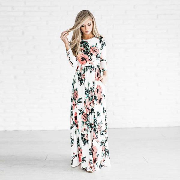 Женское летнее длинное платье с цветочным принтом, пляжное платье в стиле бохо, платье-туника, платье макси, вечернее платье