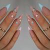Маникюр Накладные ногти Сердце Любви Цветок Простые Накладные Ногти Искусственные Ногти Серебристые Французские Длинные Миндалевидные