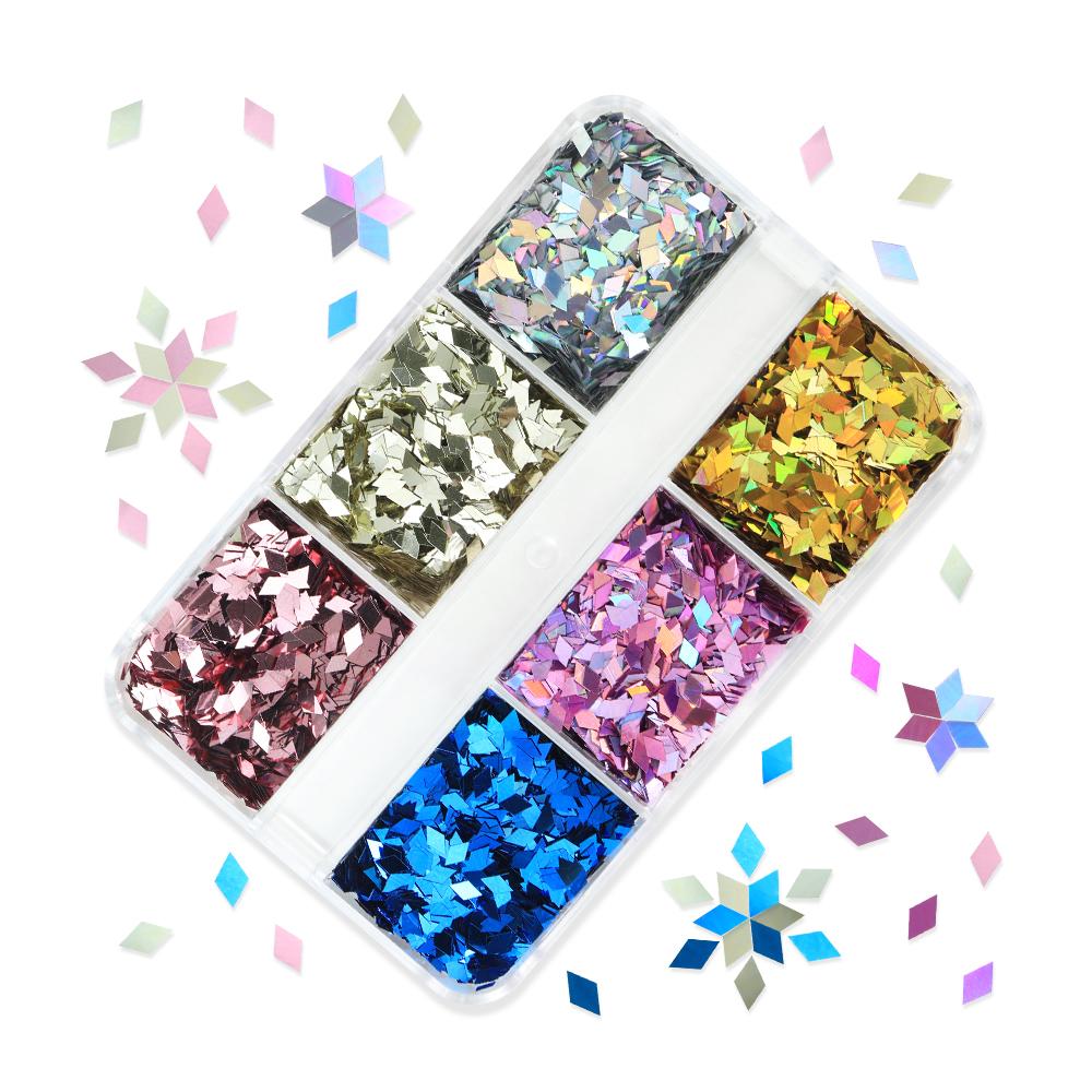 6 сеток Голографические ромбовидные пайетки для ногтей, украшение, материалы для дизайна ногтей своими руками, для принадлежностей для нейл-арта для женщин и девушек, декоративные элементы