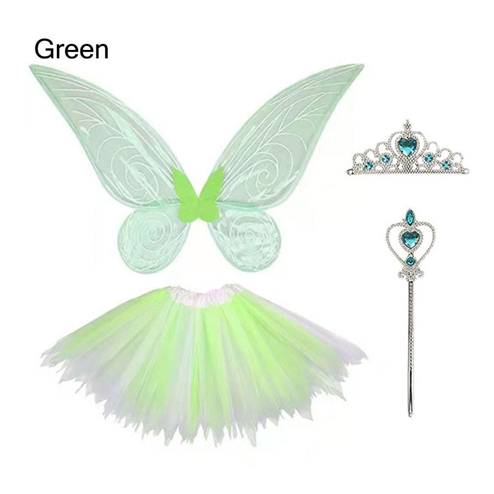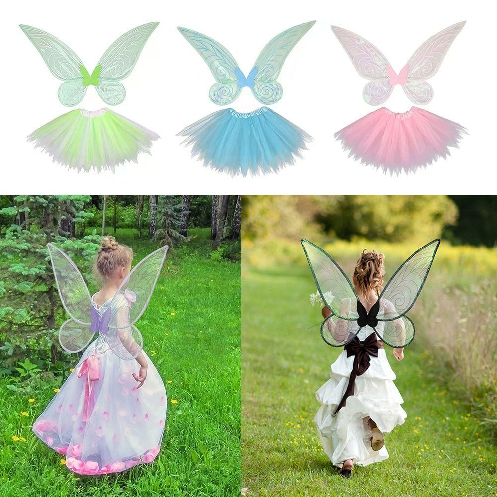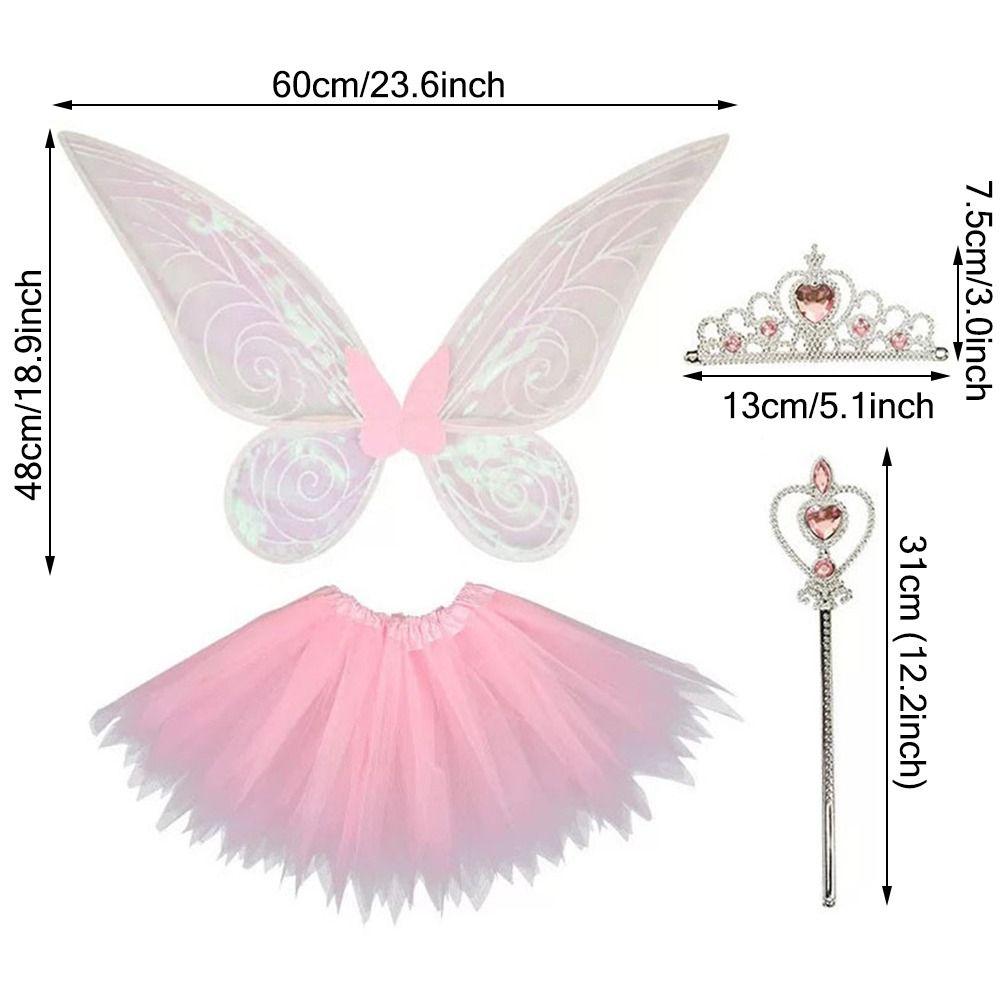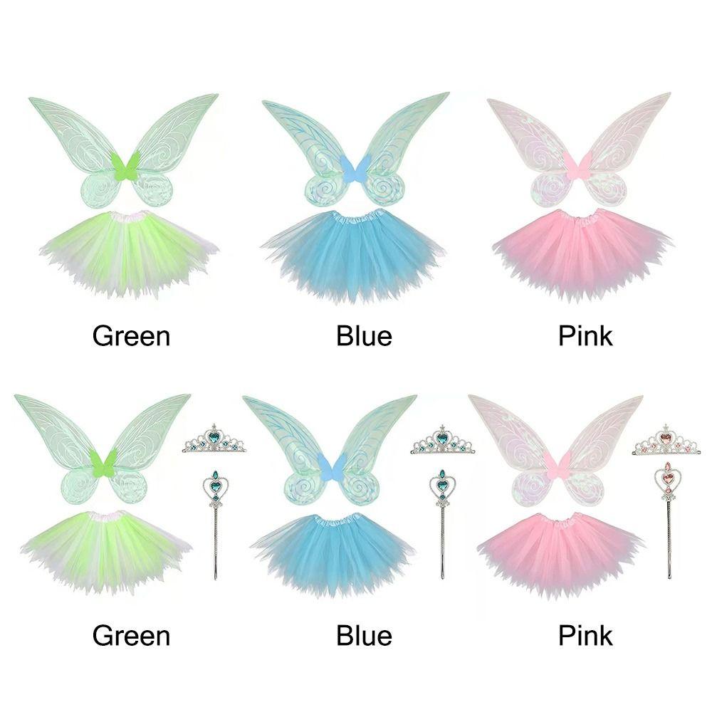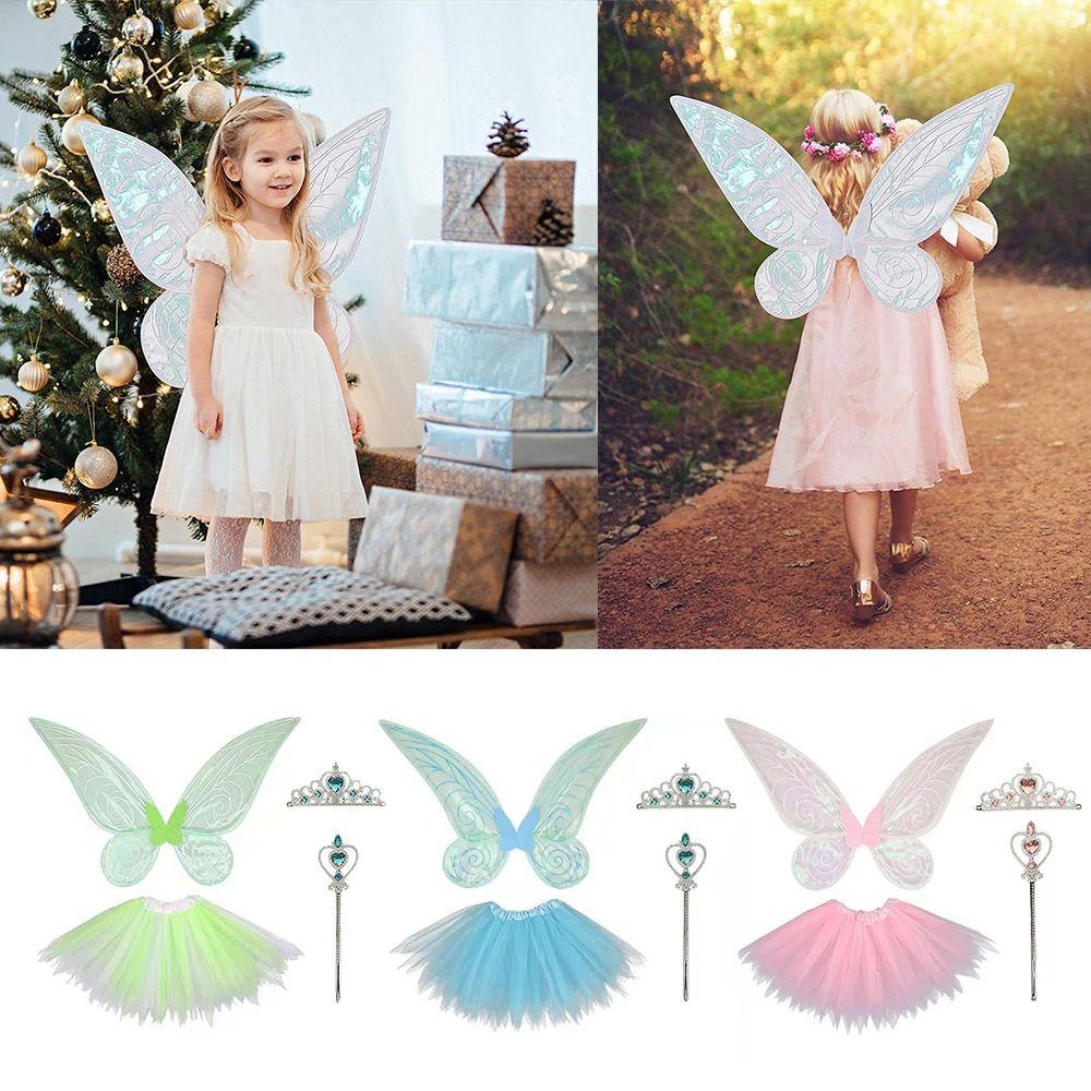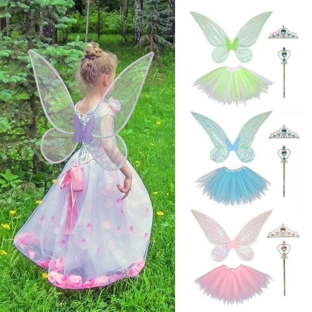 ✅ Костюмы феи-бабочки Набор для косплея: Включая крылья феи, детские платья, корону и палочку.