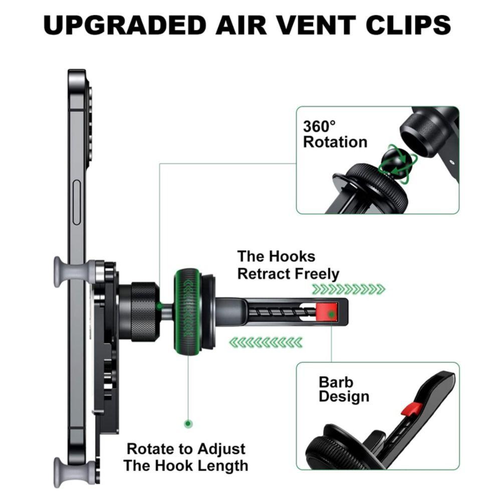 Модернизированные вентиляционные зажимы - Наши автомобильные подставки для телефонов имеют модернизированную конструкцию барбуса, которая использует ручки для регулировки длины ho-ok, чтобы прочно захватить вентиляционное лезвие. Вентиляционный патрон и телефонный патрон защищены гибким силиконом, который не поцарапает ваш телефон или автомобиль.