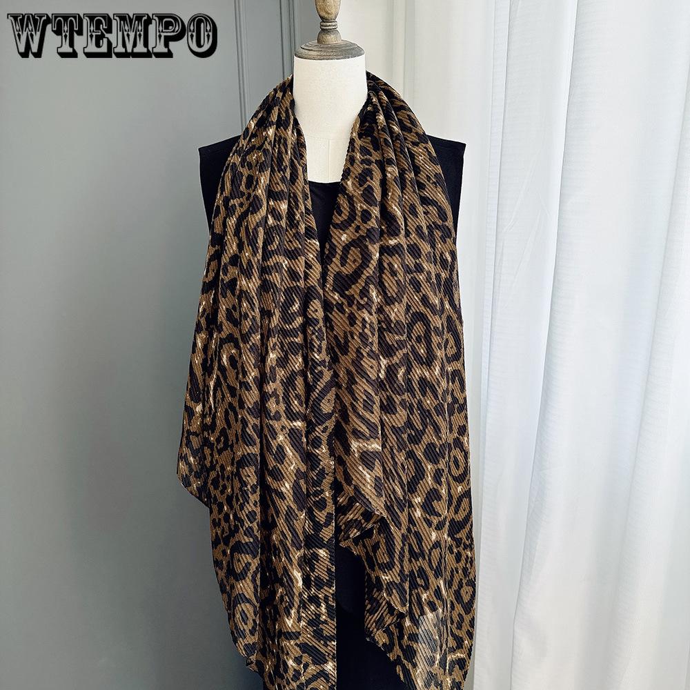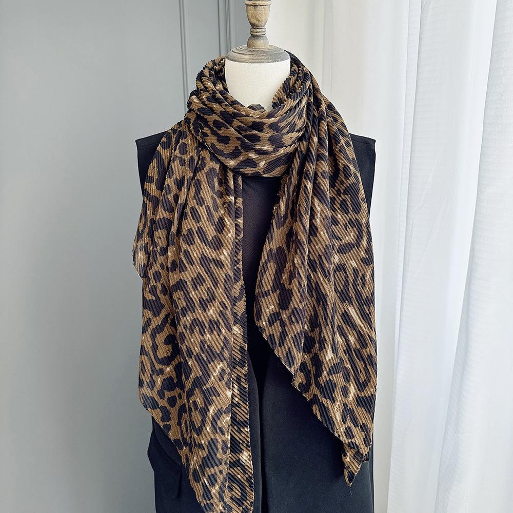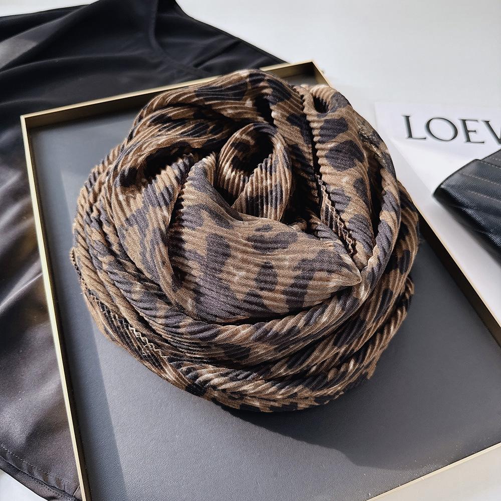 Шарф с леопардовым принтом для женщин, осенне-зимний, в винтажном стиле, можно обернуть вокруг как шаль для тепла и защиты шеи.