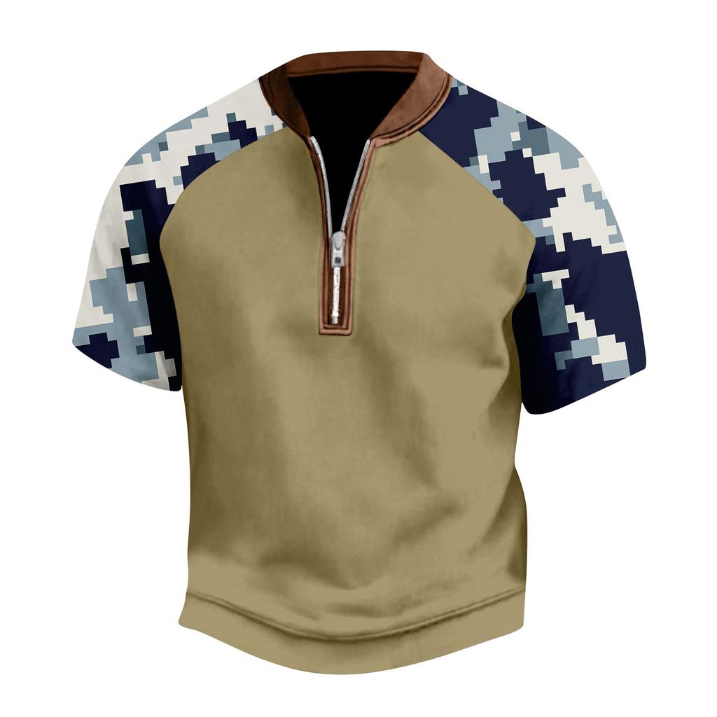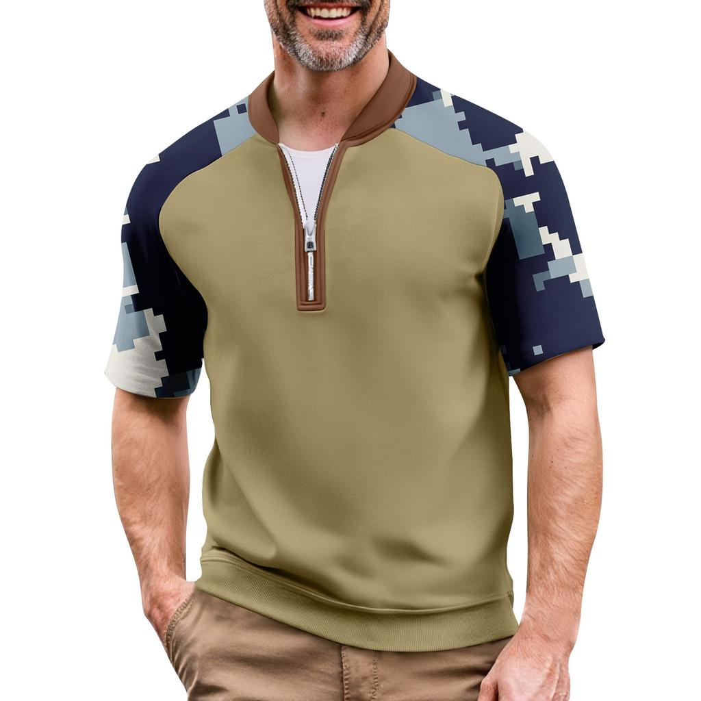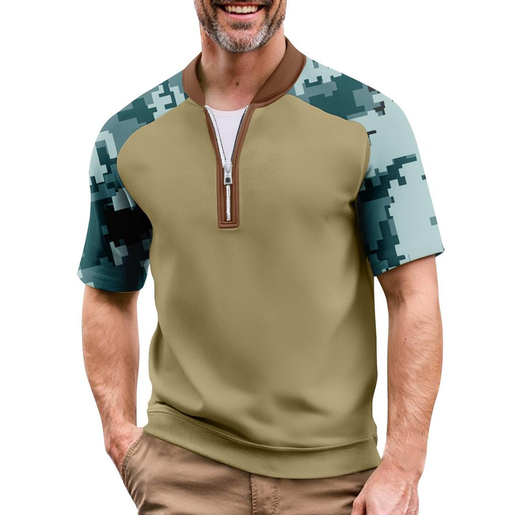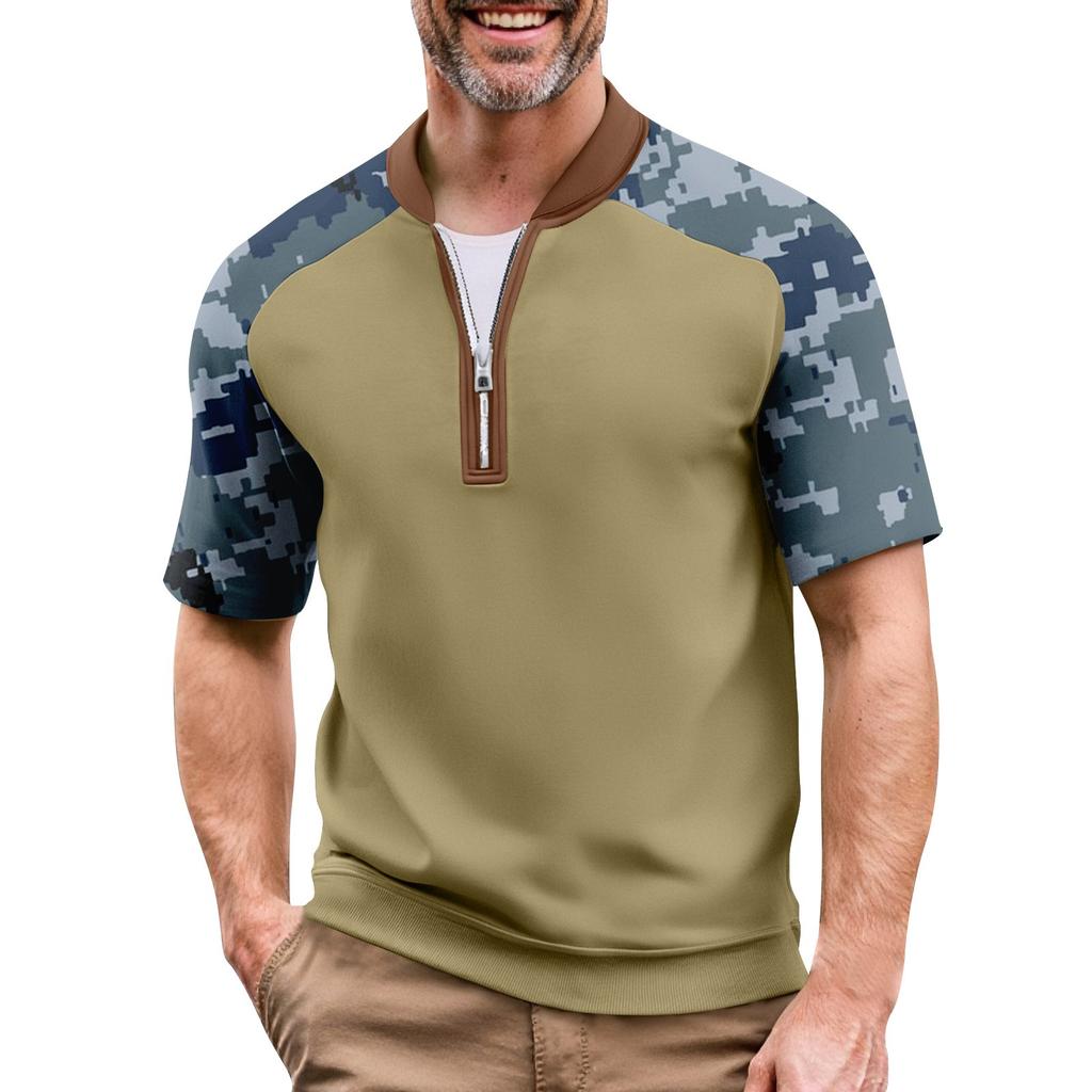 Мужская летняя футболка камуфляжной расцветки в стиле кэжуал, спортивный дышащий топ с воротником на молнии