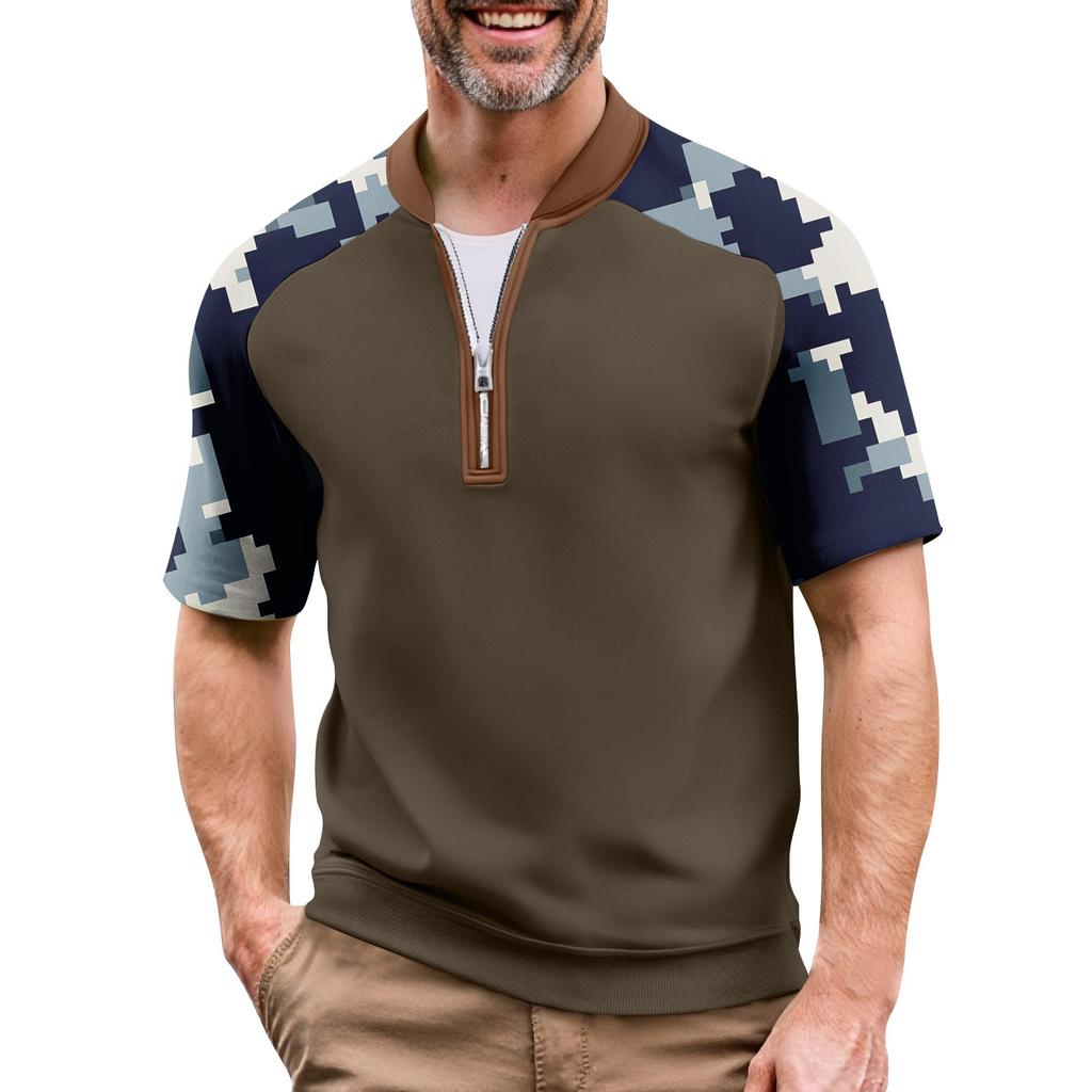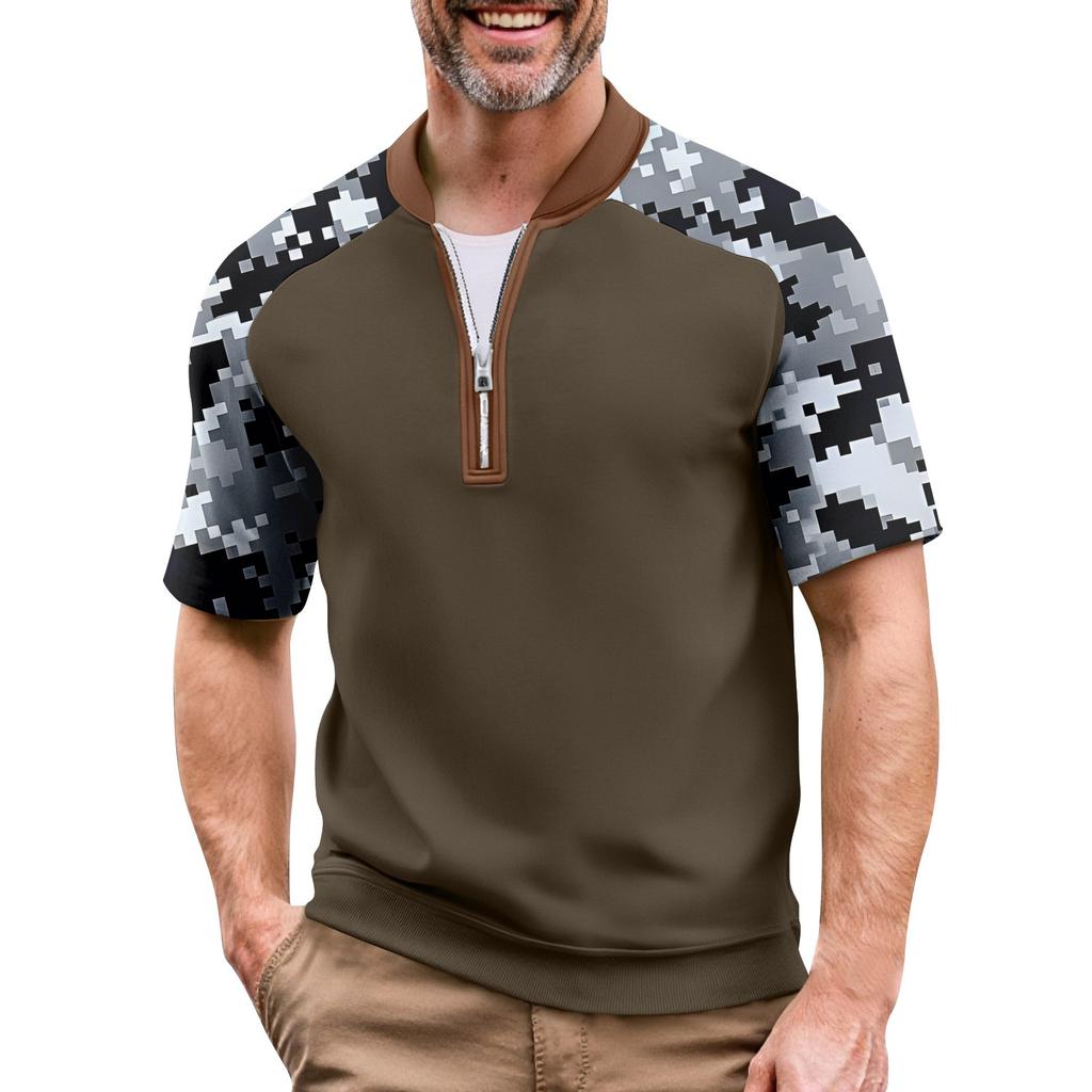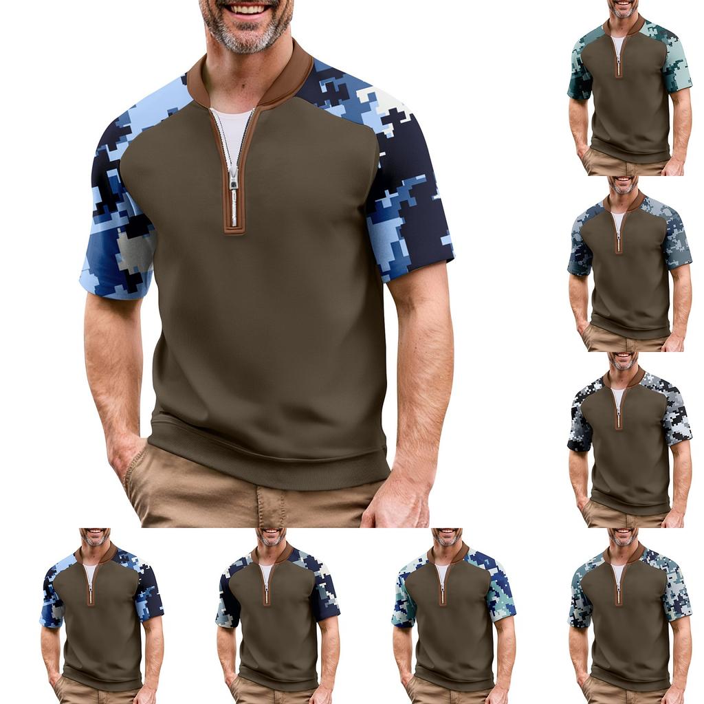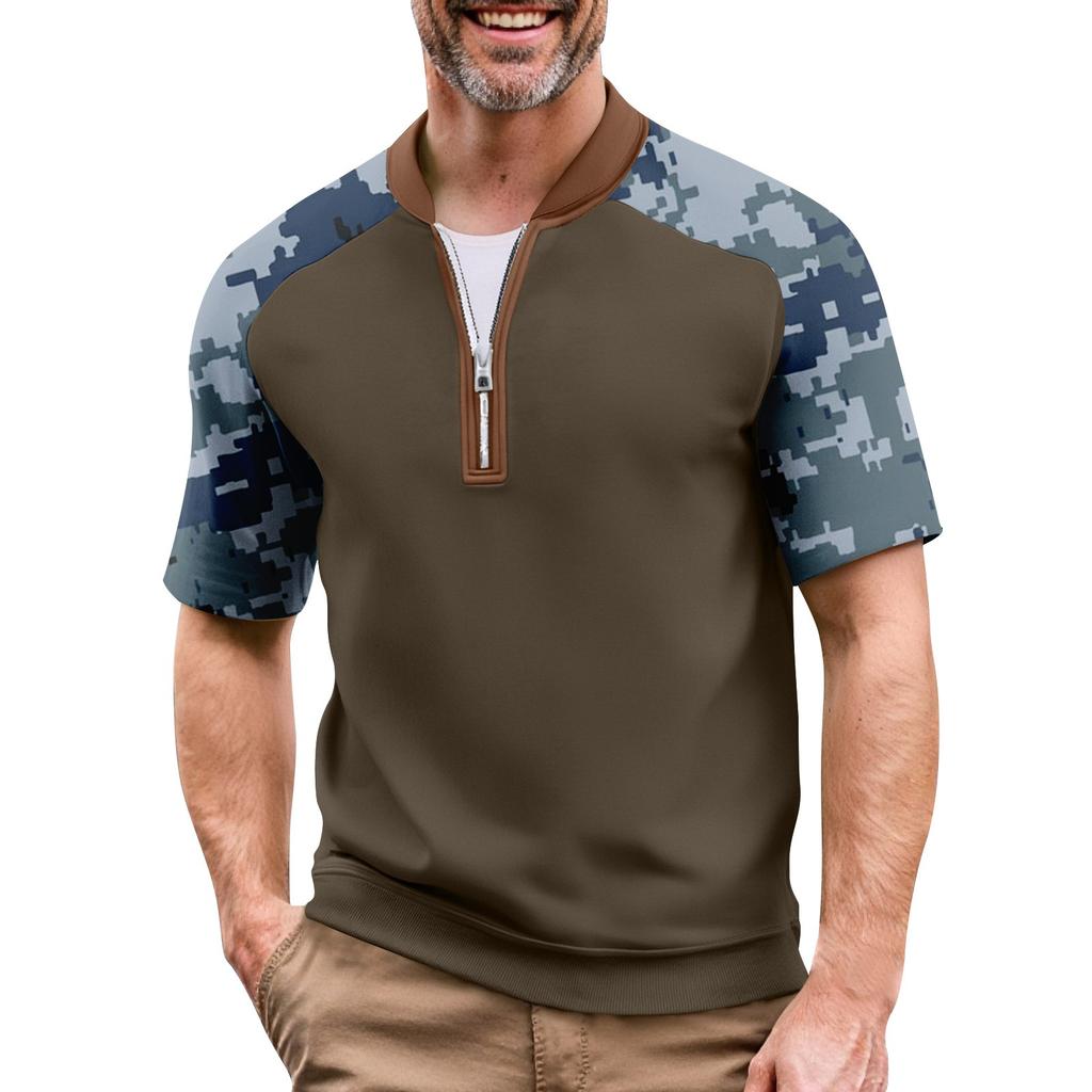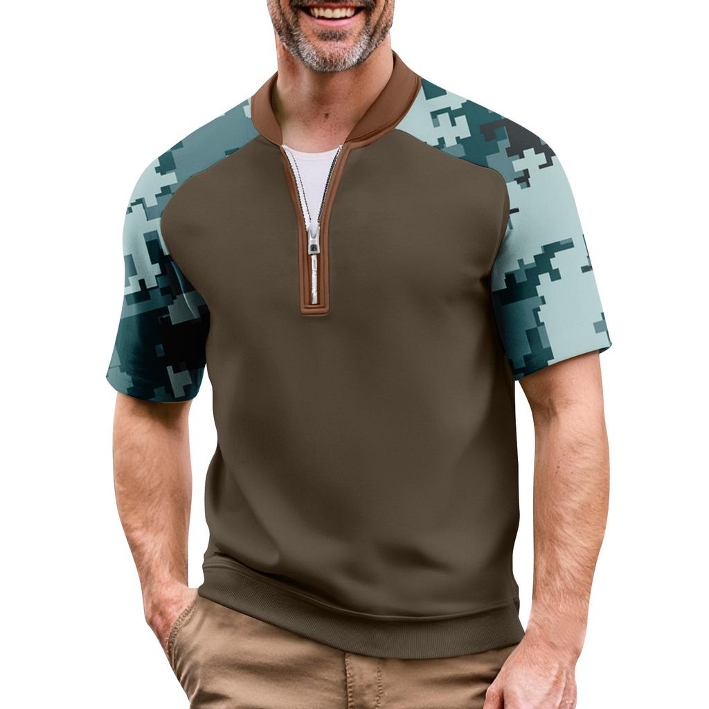 Мужская летняя футболка камуфляжной расцветки в стиле кэжуал, спортивный дышащий топ с воротником на молнии