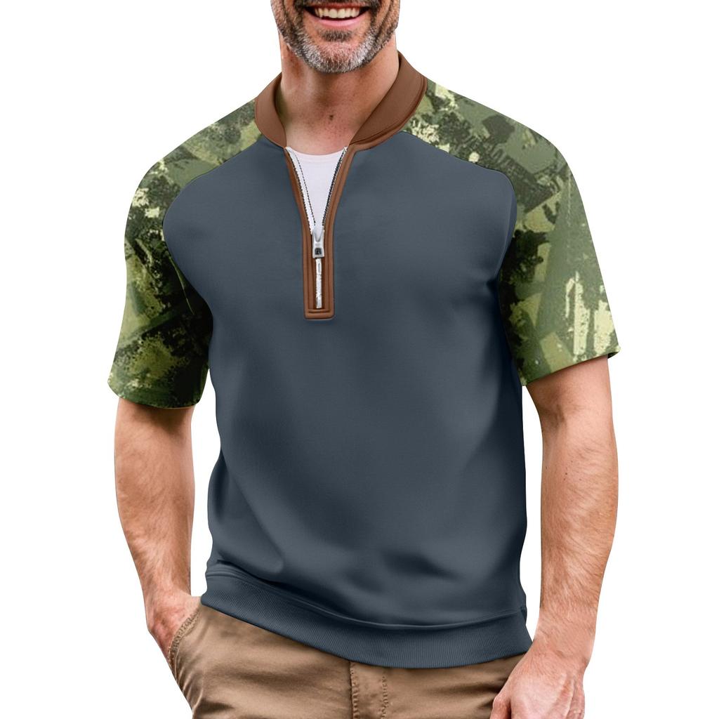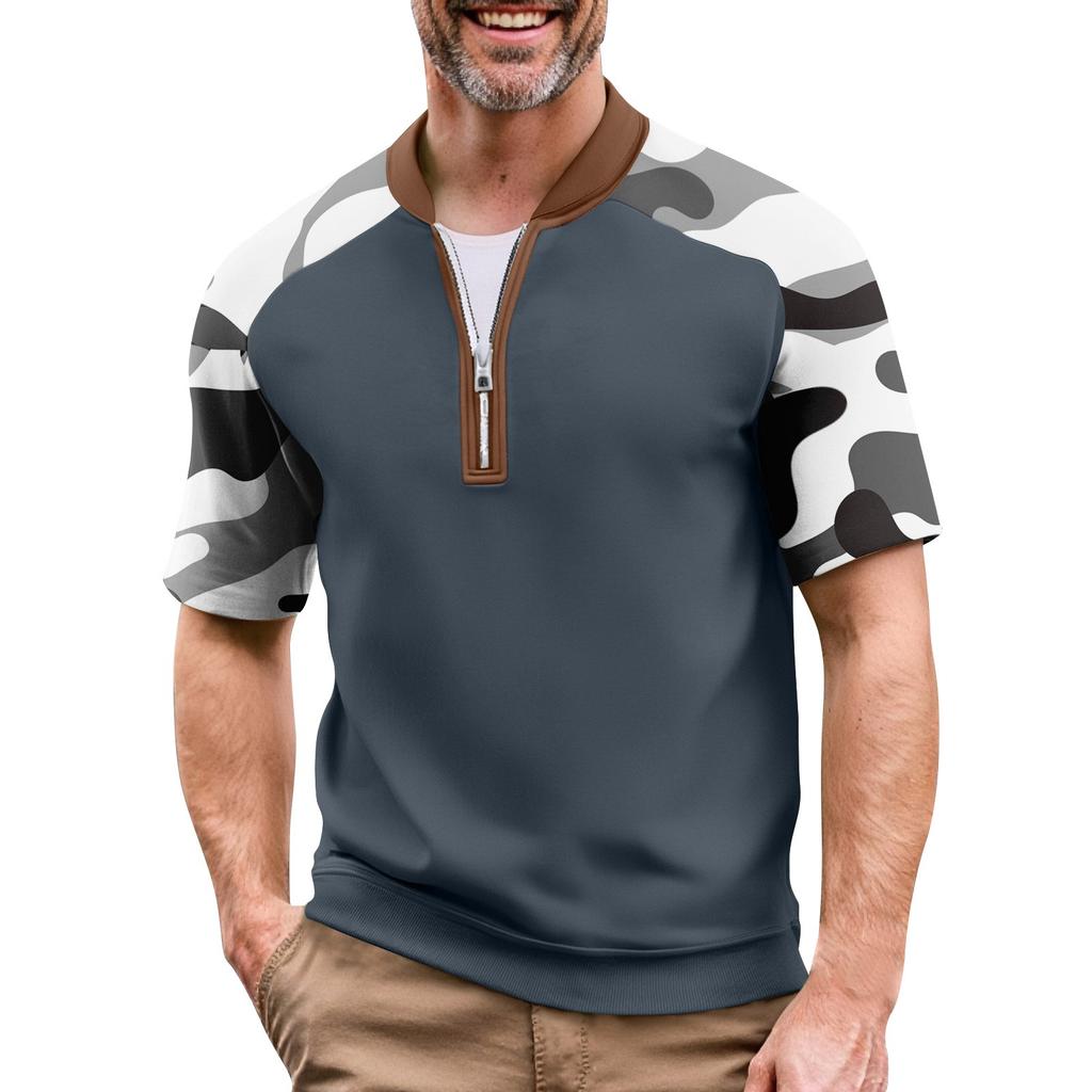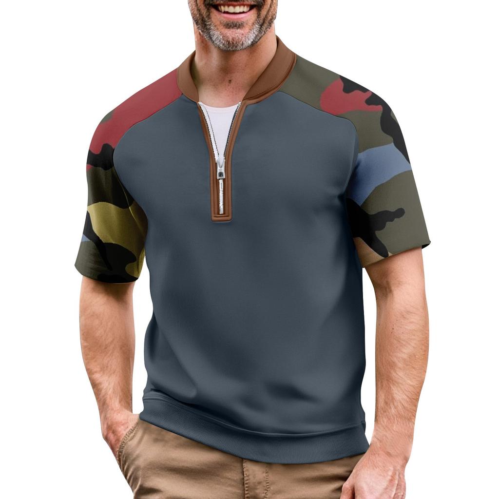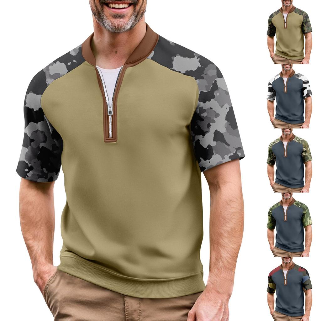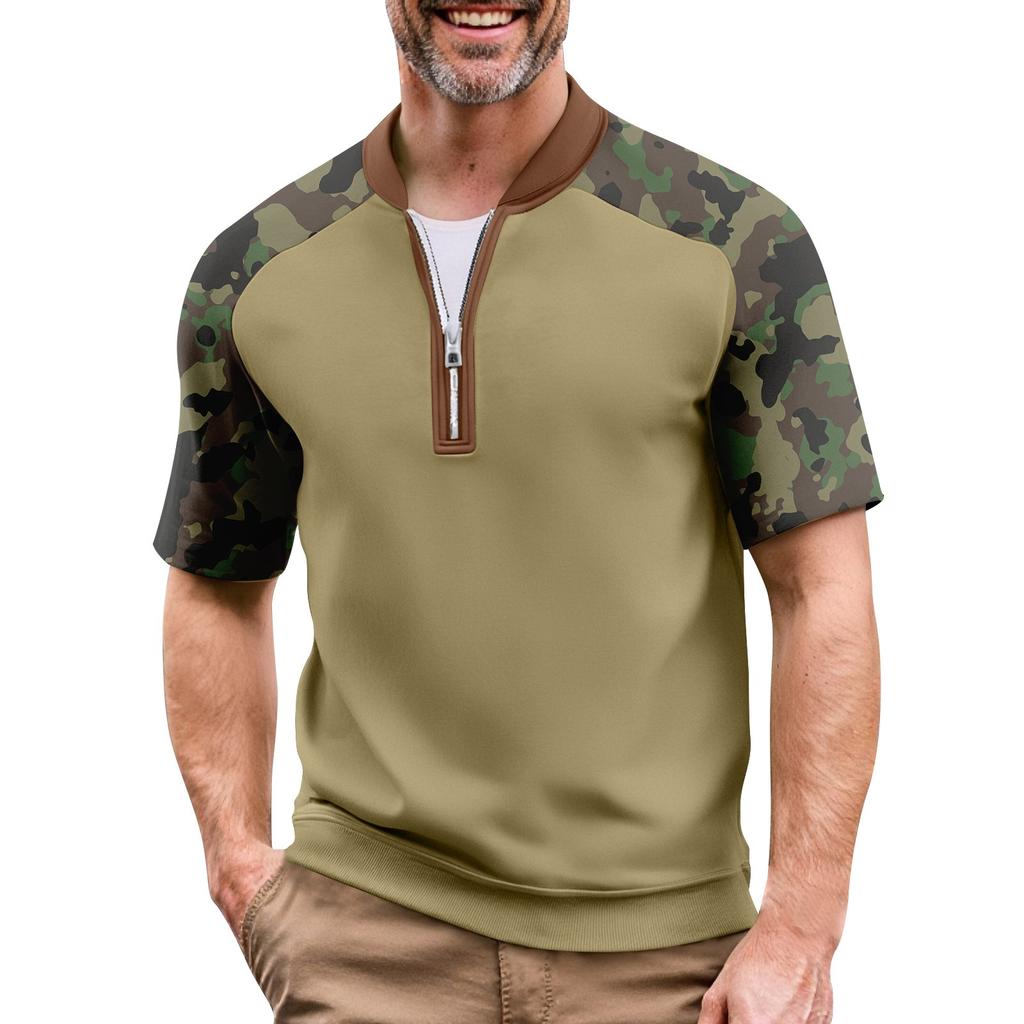 Мужская летняя футболка камуфляжной расцветки в стиле кэжуал, спортивный дышащий топ с воротником на молнии