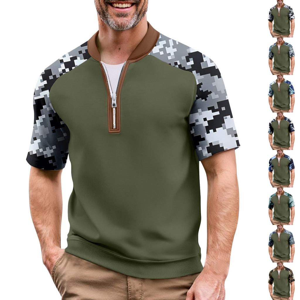 Мужская летняя футболка камуфляжной расцветки в стиле кэжуал, спортивный дышащий топ с воротником на молнии — купить товар онлайн с бесплатной доставкой до всему миру!