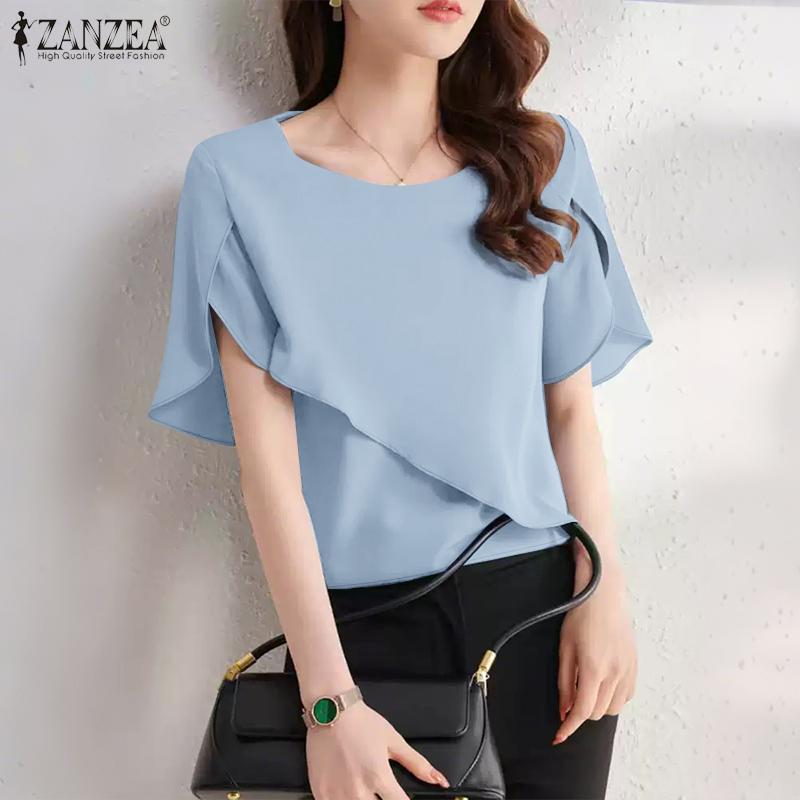 ZANZEA Женская летняя блузка свободного покроя с круглым вырезом и коротким рукавом