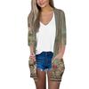 Женский модный свободный повседневный кардиган с принтом и карманами, куртка с рукавом семь восьмых, топ