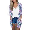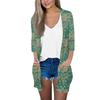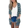 Женский модный свободный повседневный кардиган с принтом и карманами, куртка с рукавом семь восьмых, топ