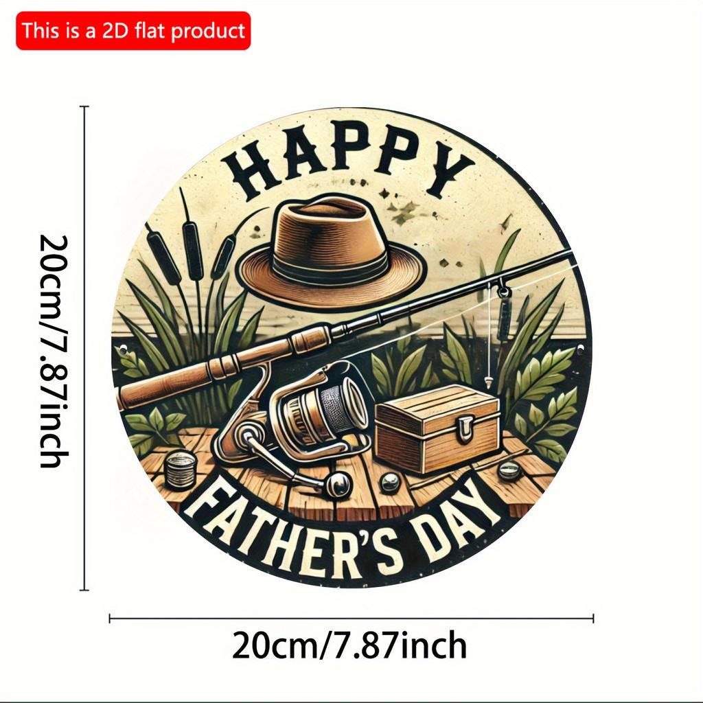 2D Плоский 20*20см, Круглое Деревянное Лого "С Днем Отца" Настенное Искусство, Ретро Дизайн Рыбалки, Идеальный Подарок для Отцов на День Отца, Декор Легко Вешается.