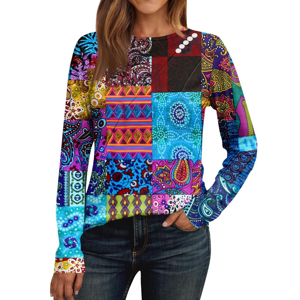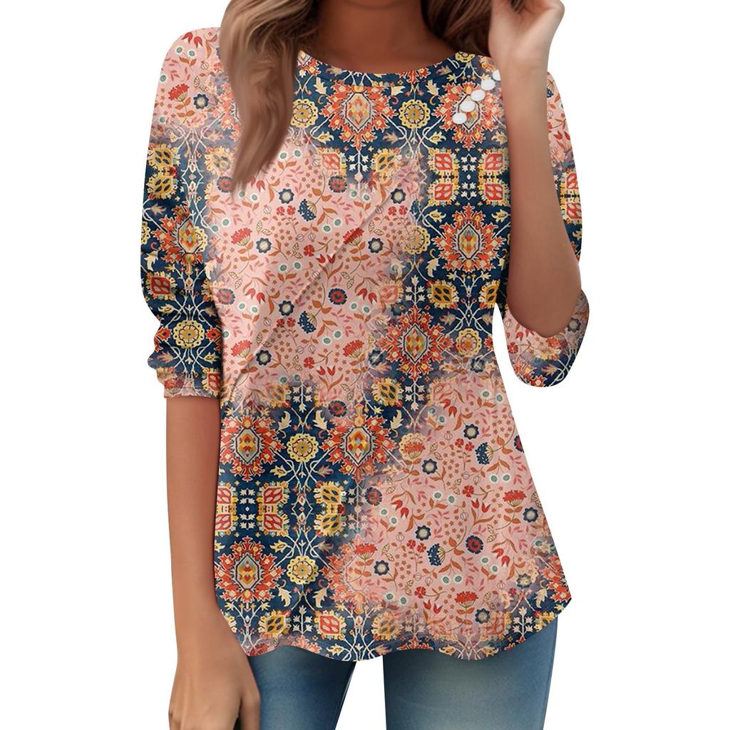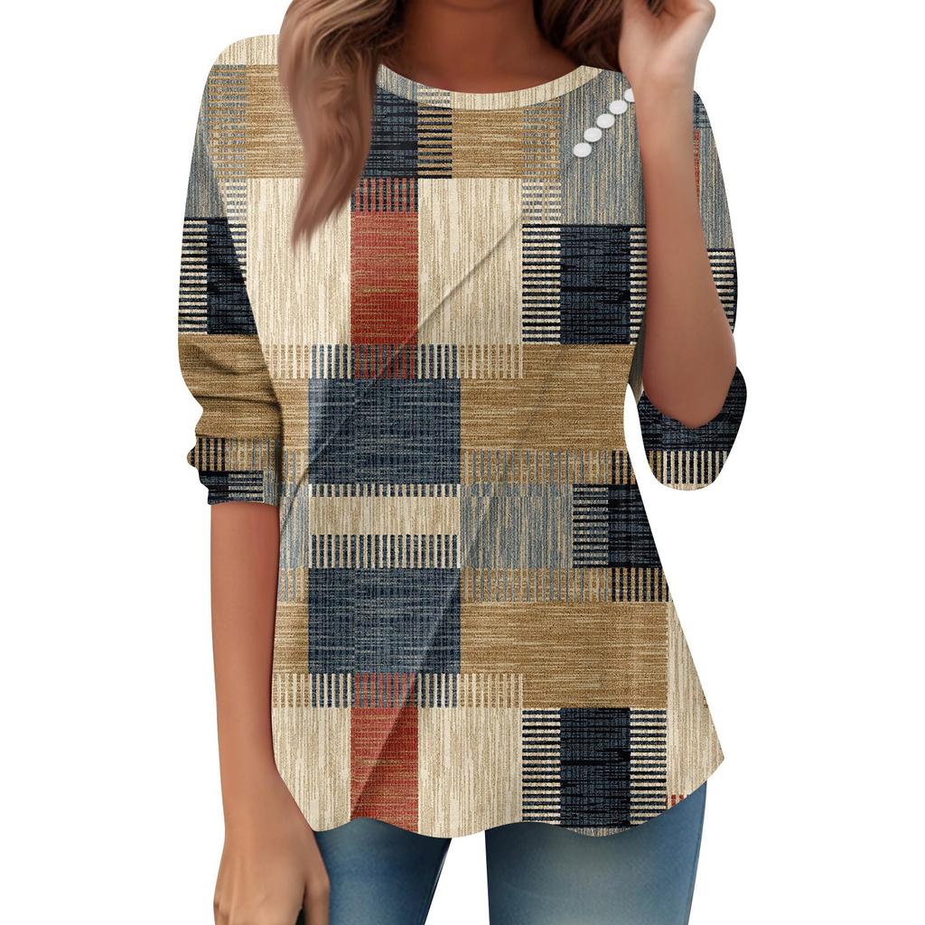 Женский свободный повседневный топ с длинным рукавом, круглым вырезом, пуговицами, принтом в полоску, футболка