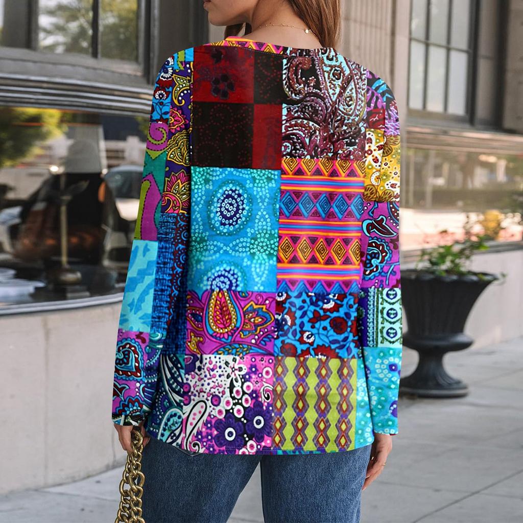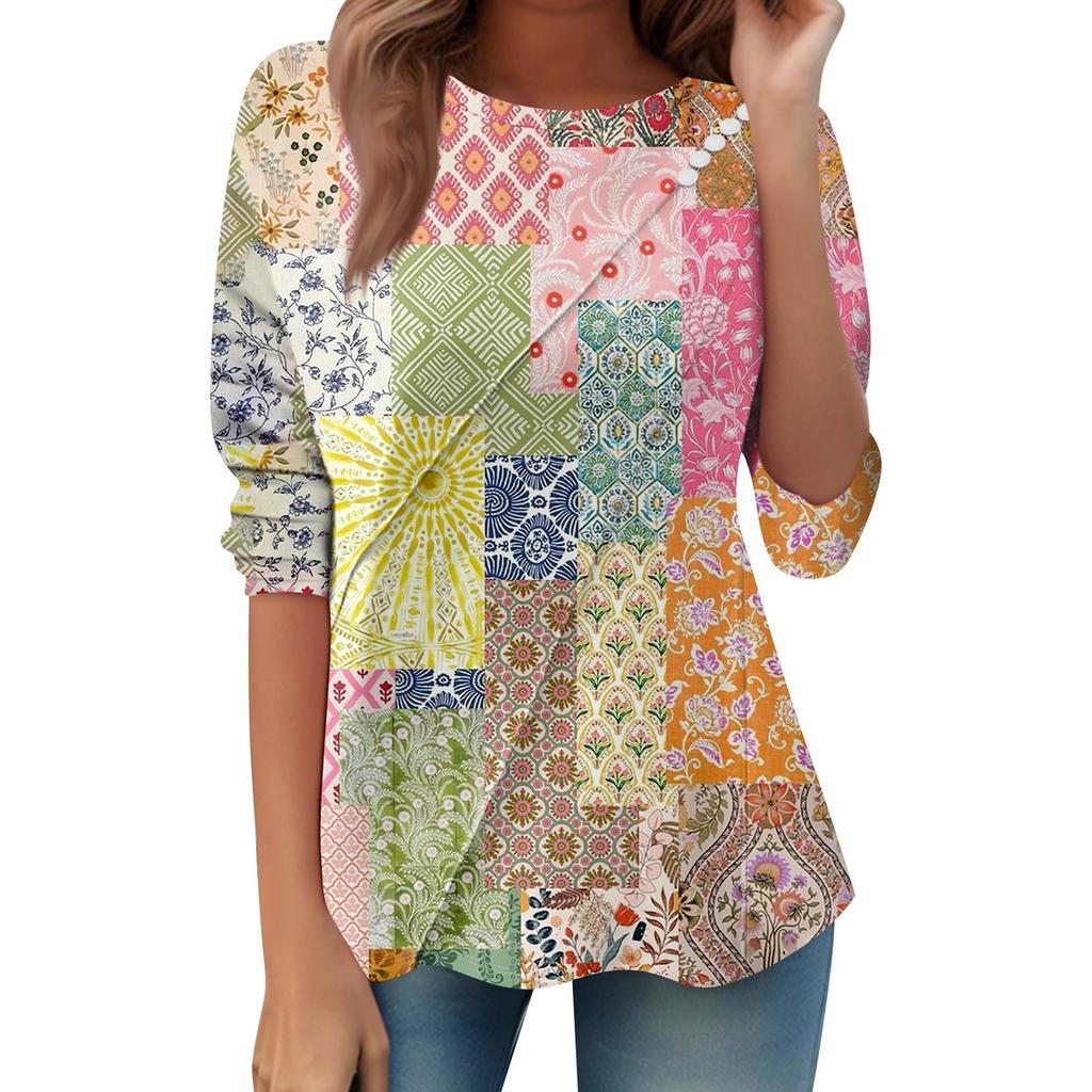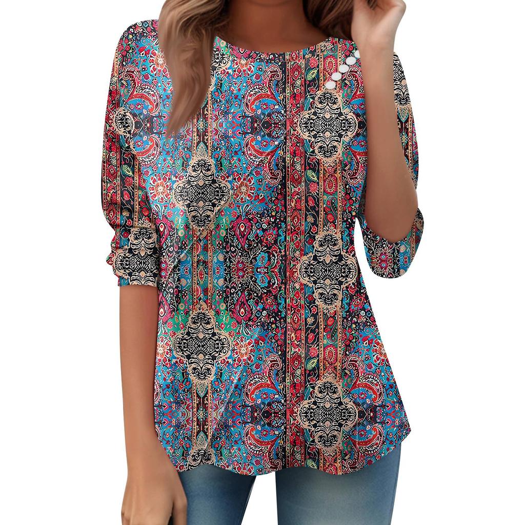 Женский свободный повседневный топ с длинным рукавом, круглым вырезом, пуговицами, принтом в полоску, футболка