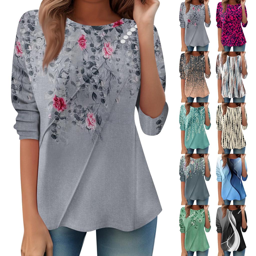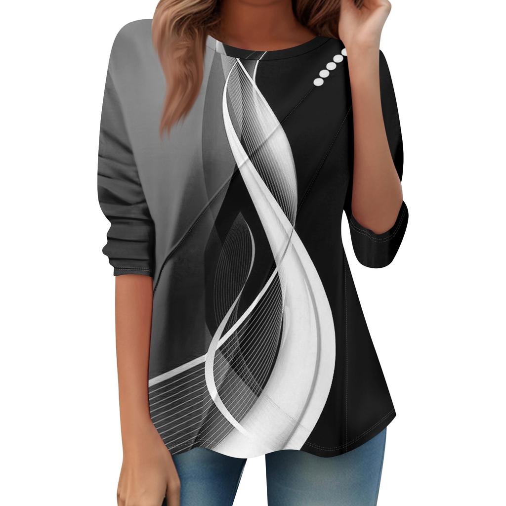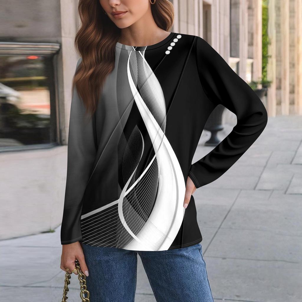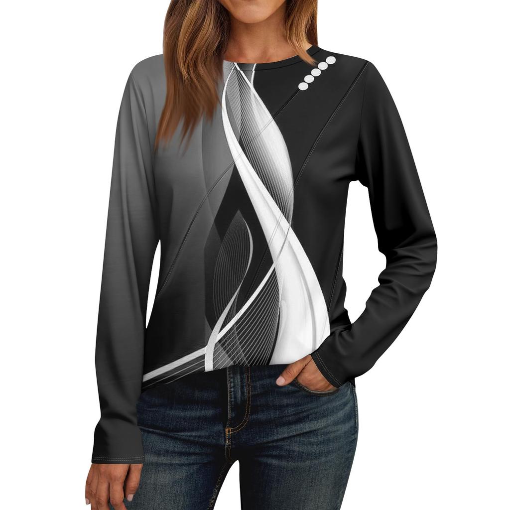 Женский свободный повседневный топ с длинным рукавом, круглым вырезом, пуговицами, принтом в полоску, футболка