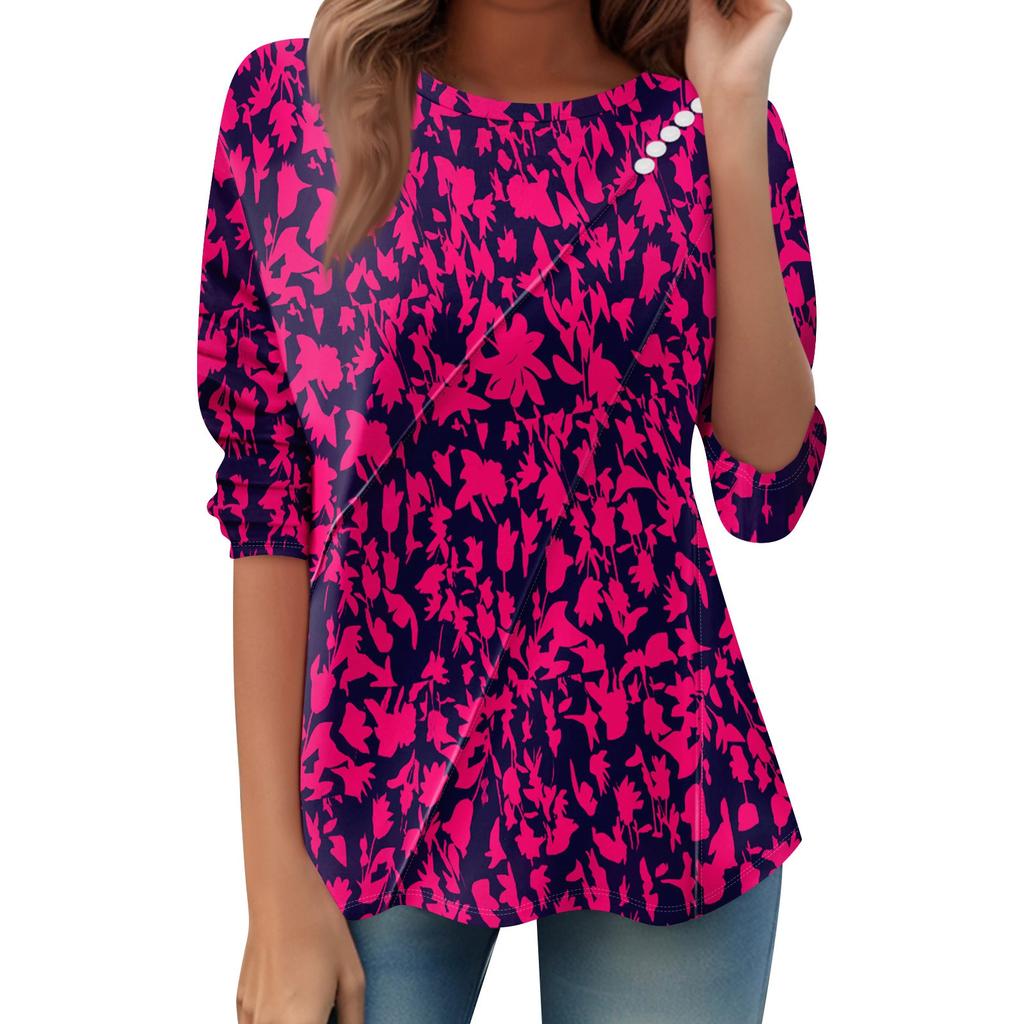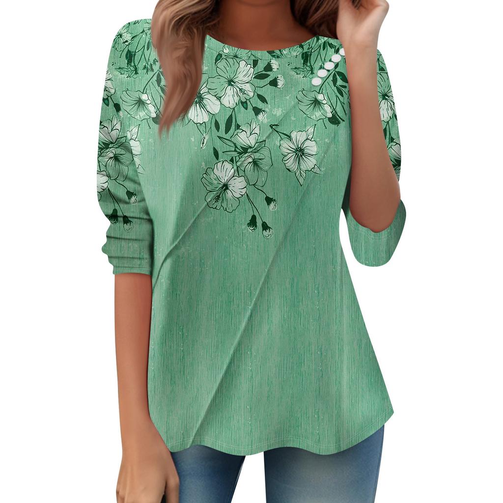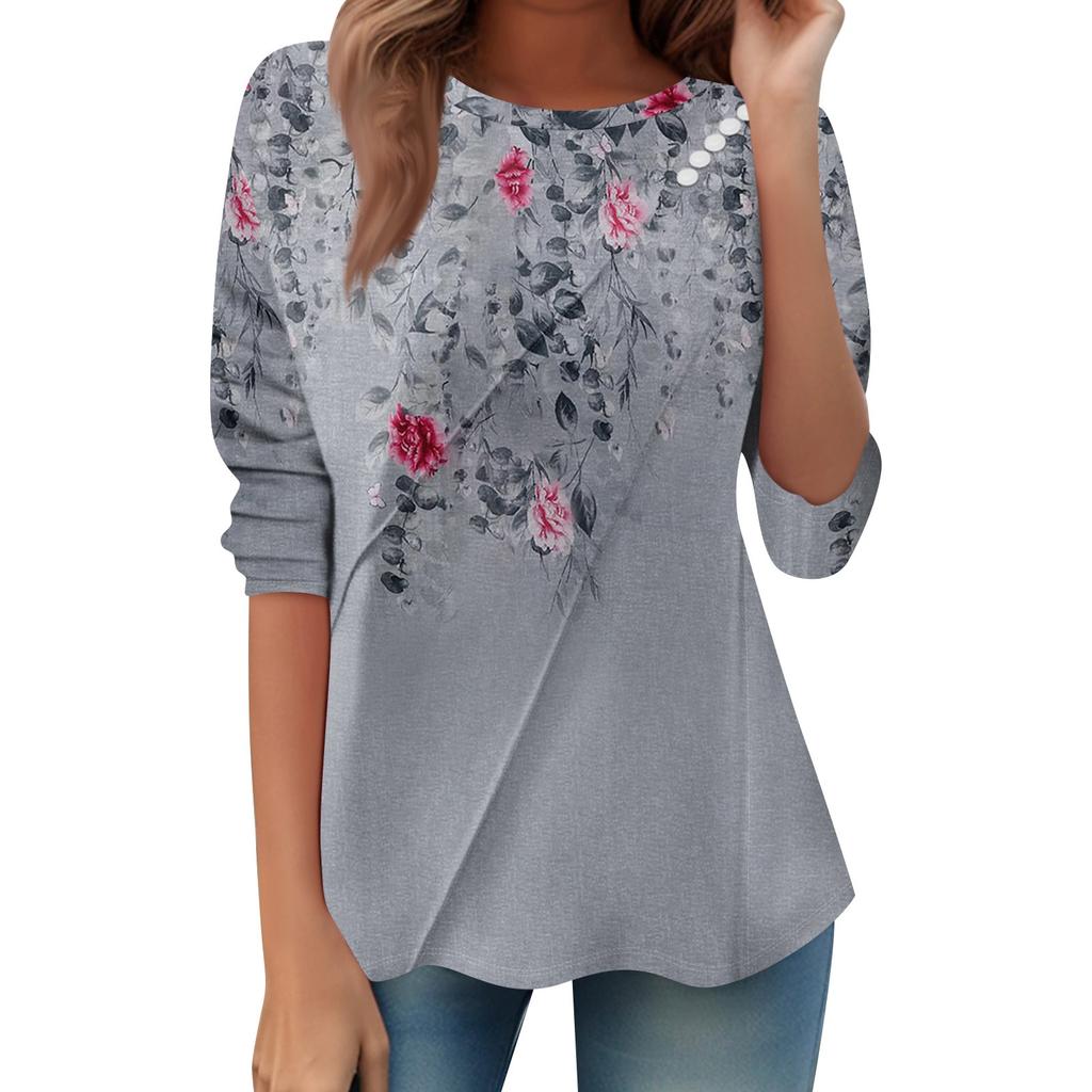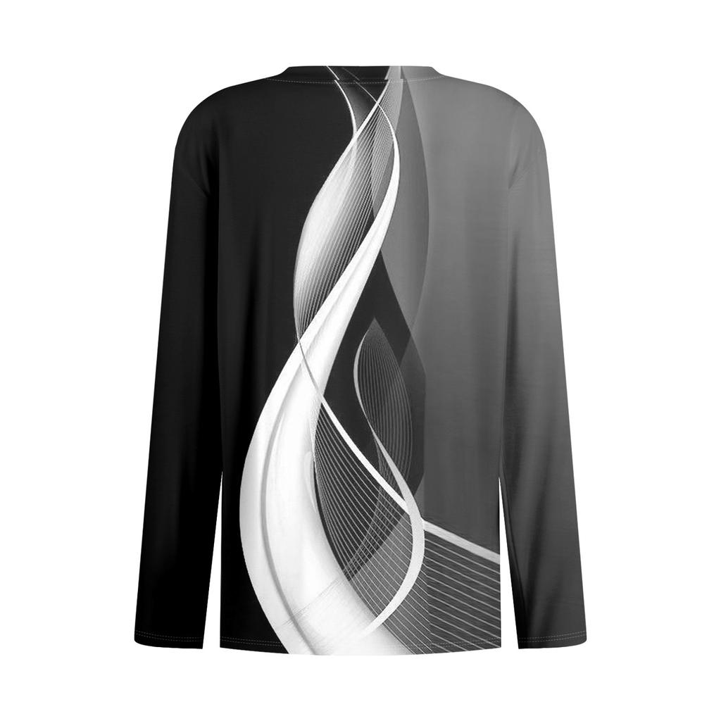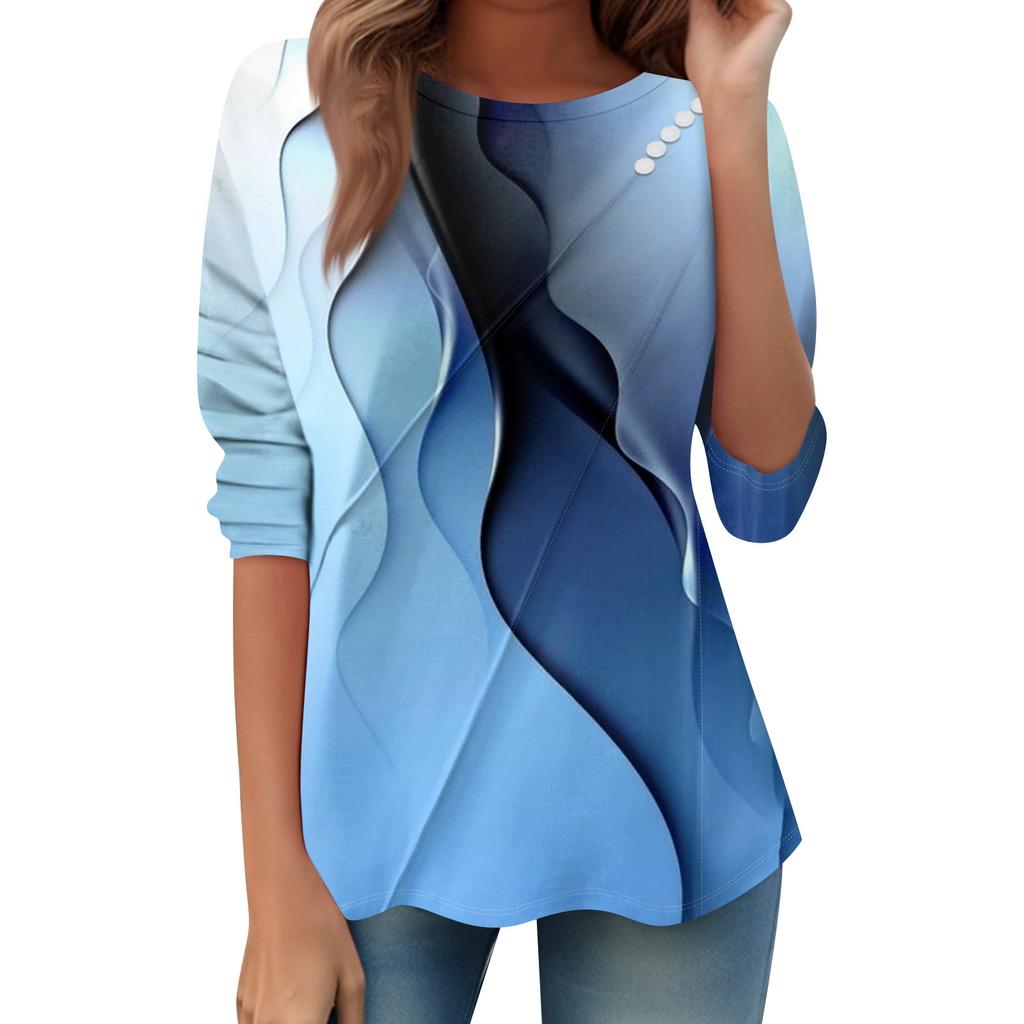 Женский свободный повседневный топ с длинным рукавом, круглым вырезом, пуговицами, принтом в полоску, футболка