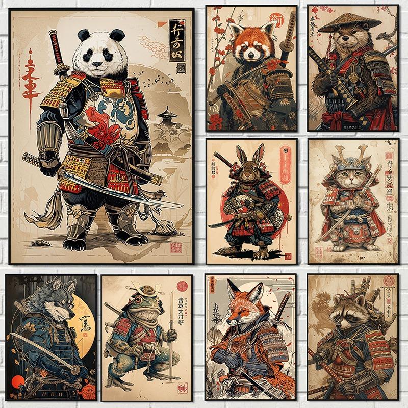 Укиё-э Японский Ретро Воин Животное Портрет Постеры Принты Холст Живопись Настенное Искусство Картина Гостиная Домашний Декор