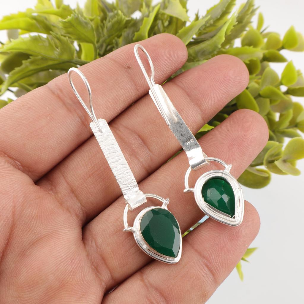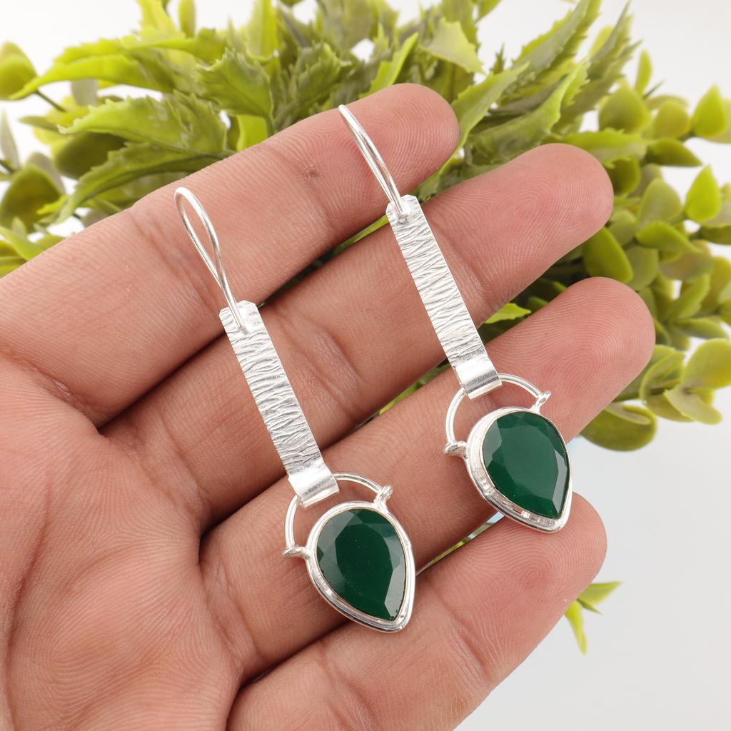 Серьги из зеленого оникса, Серьги из стерлингового серебра 925 пробы, Ювелирные изделия с драгоценными камнями, Серьги ручной работы, Удивительные ювелирные изделия, Подарок для нее