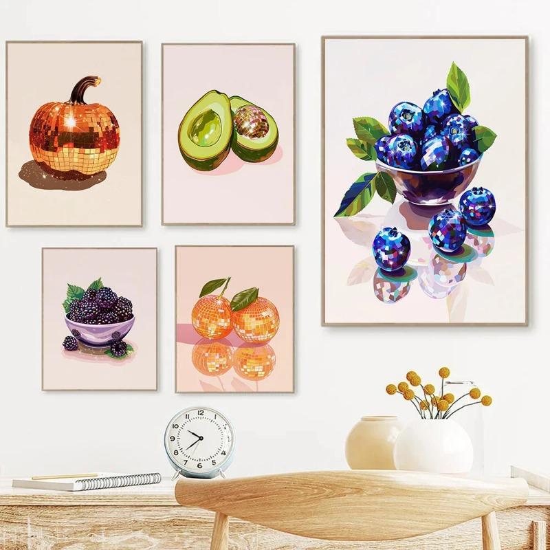 Диско Винтаж Вишня Клубника Черника Арбуз Лимон Фрукты Искусство Плакат Картины На Холсте Настенные Картины Домашний Декор