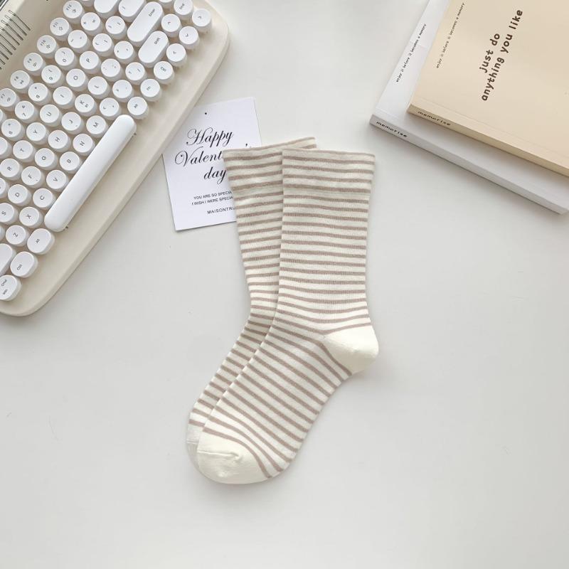 Женские летние тонкие однотонные полосатые дышащие носки-трубы с широким голенищем