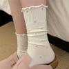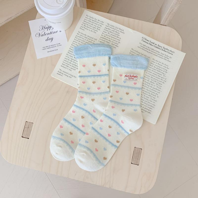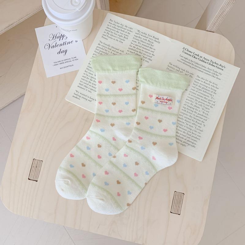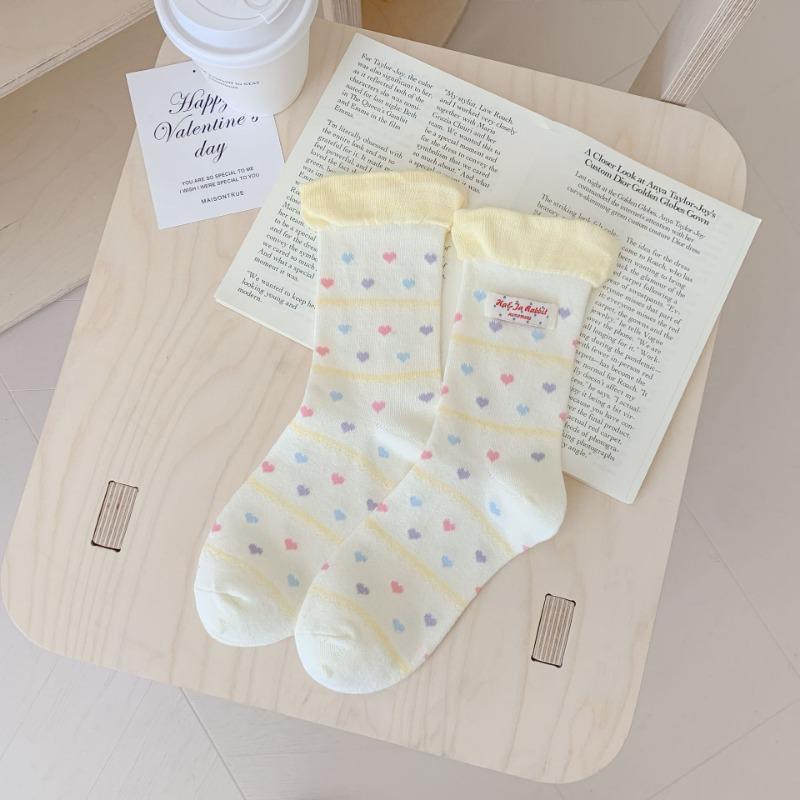 Женские весенне-осенние милые носки в горошек, сладкий мультяшный дизайн, с тканевым логотипом, в рубчик