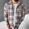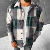 Мужские клетчатые рубашки с длинным рукавом, фланелевая куртка с лацканами на пуговицах и карманами, пальто