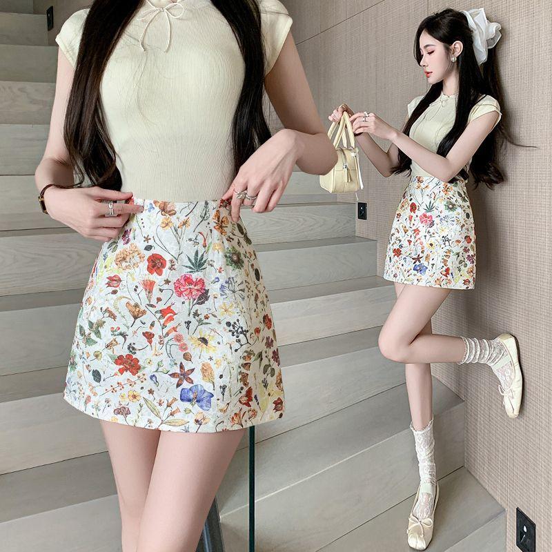 Элегантная Цветочная Ретро Короткая Юбка Женская Весна Лето С Завышенной Талией Создает Стройнящий Эффект А-силуэт