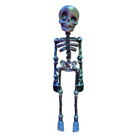 Конструкция скелета отличается четкой структурой с подвижными суставами, позволяющими придавать ему различные позы для дополнительного веселья..