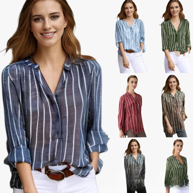 Простая и модная рубашка в полоску с принтом для женщин во внешней торговле, рубашка свободного кроя — купить товар онлайн с бесплатной доставкой по всему миру!