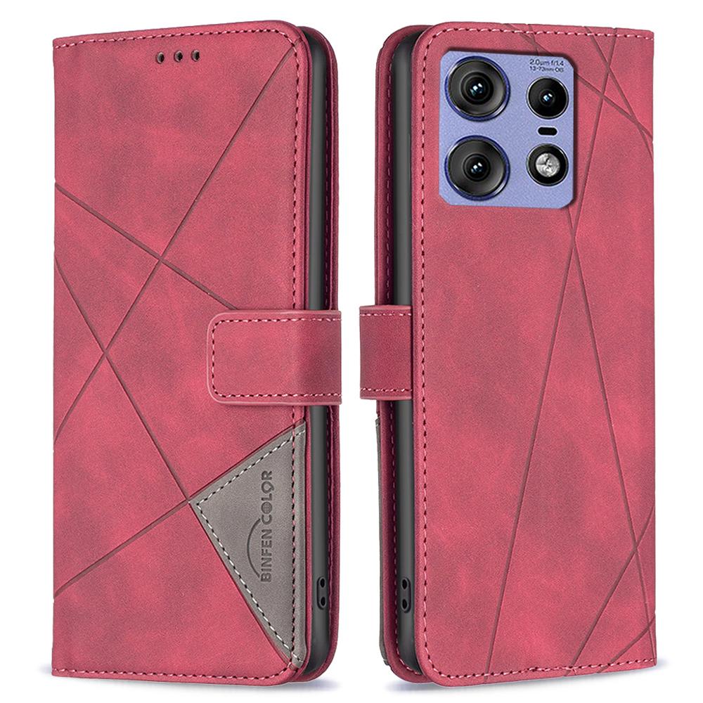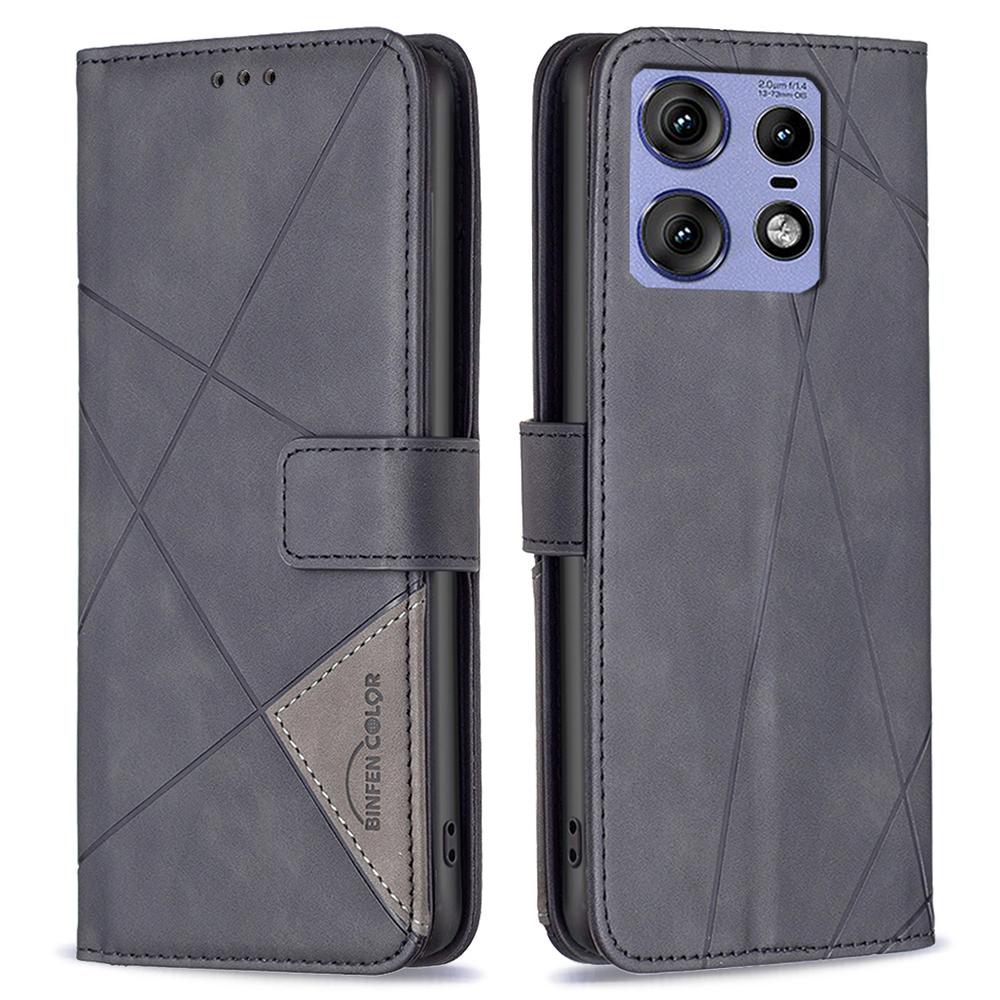 BINFEN COLOR For Motorola Edge 50 Pro 5G Phone Cases Wallet Stand Geometry Imprinted Leather Cover