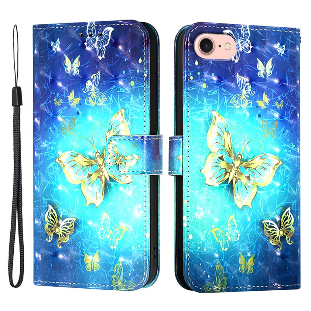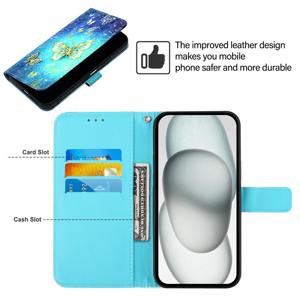 Для iPhone 16e Кожаный чехол с рисунком Кошелек-подставка Мобильная обложка с ремешком
