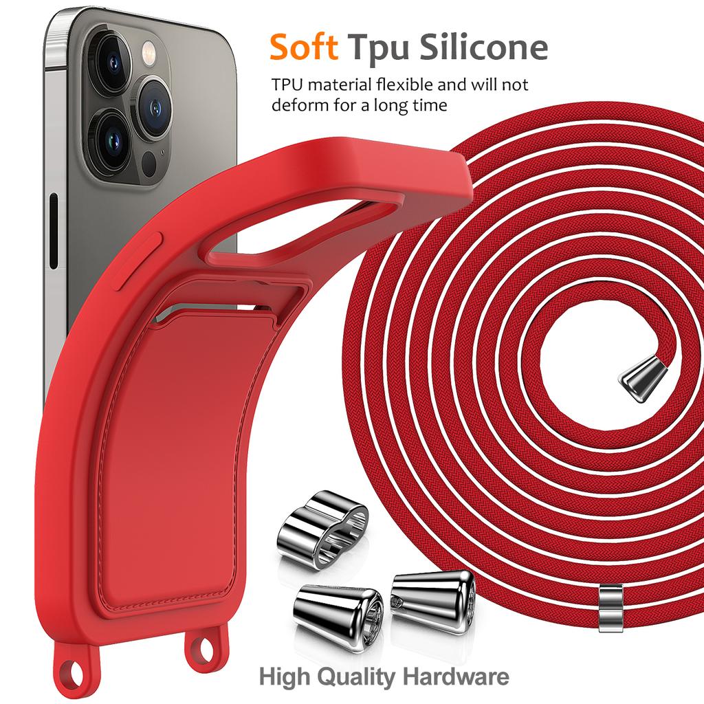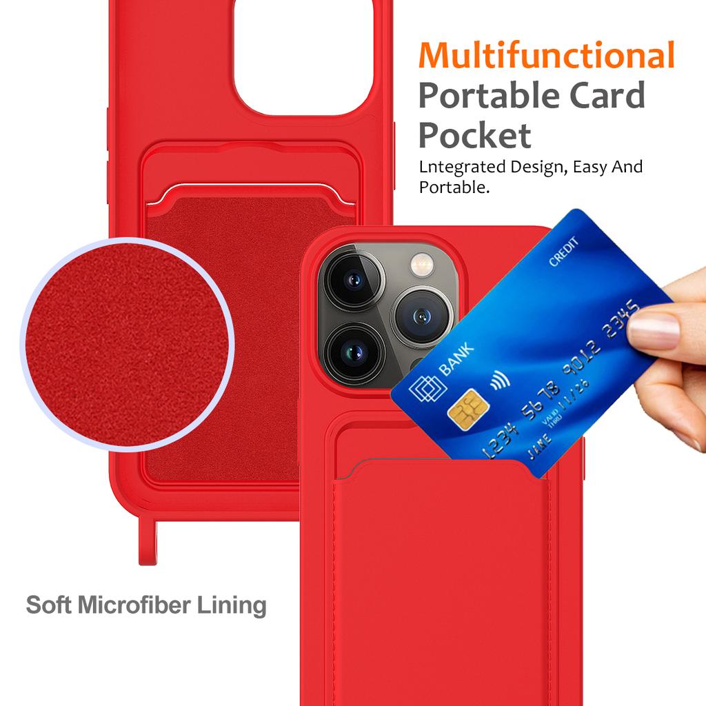 For iPhone 14 Pro Max Case Card Slot Liquid Silicone Phone Shell with Lanyard