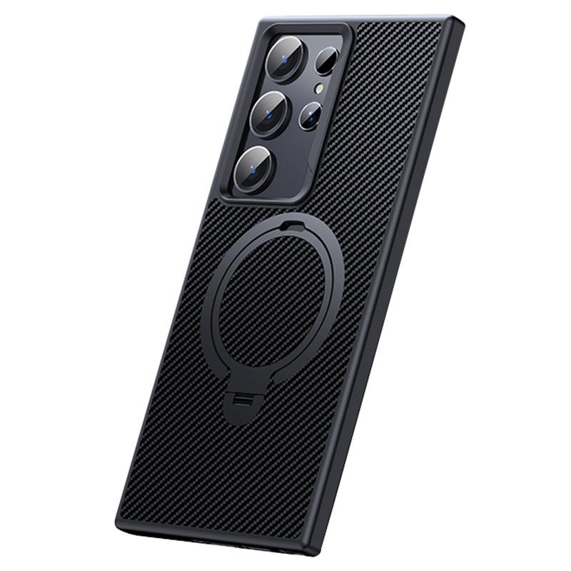 Чехол для Samsung Galaxy S23 Ultra, совместимый с MagSafe, текстура углеродного волокна, подставка, защитная крышка из ПК+ТПУ