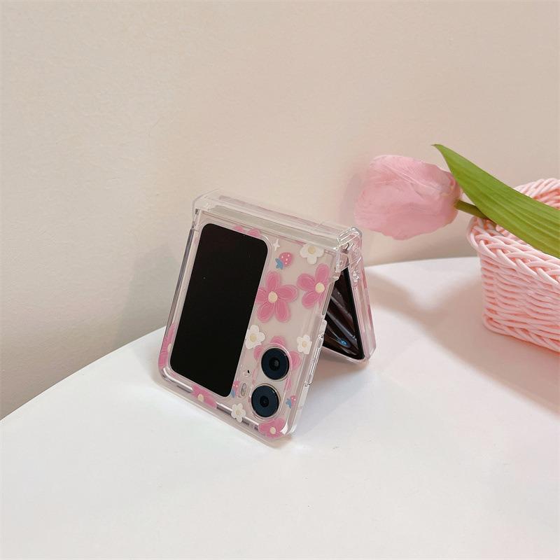 Для Oppo Find N2 Flip 5G Чехол с цветочным принтом PC Чехол для телефона с цепочкой-шармом в виде цветка