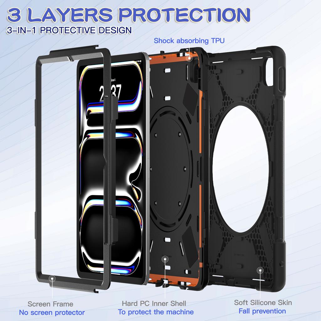 For iPad Pro 13 (2024) Case with Shoulder Strap TPU+PC+Silicone Kickstand Tablet Cover